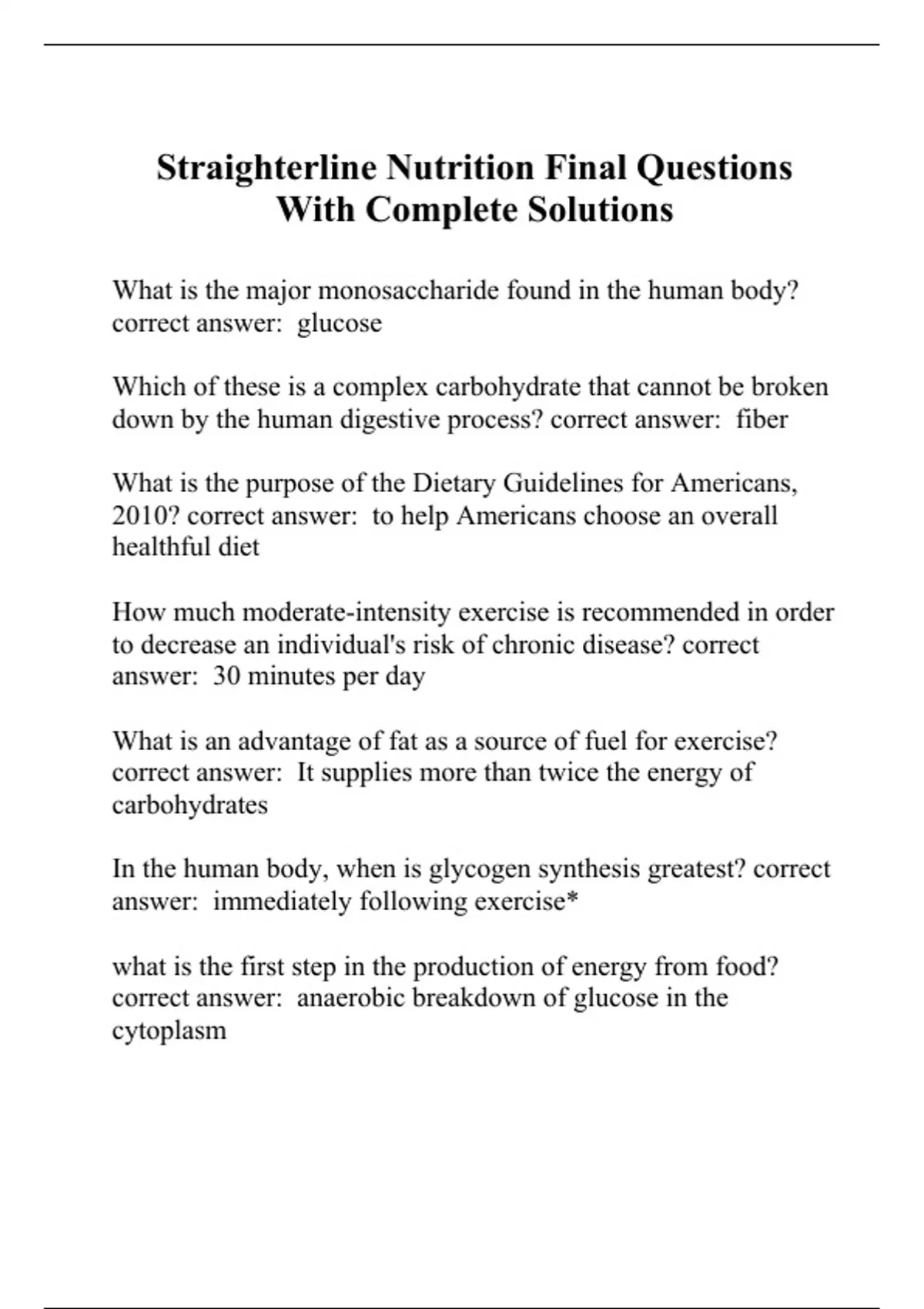 Straighterline Nutrition Final Questions With Complete Solutions.