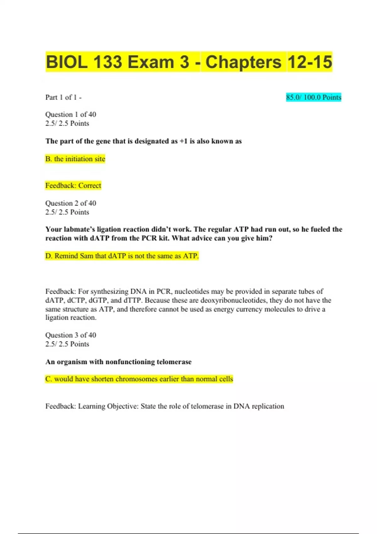 BIOL 133 Exam 3 - Chapters 12-15 questions and answers Latest % correct answers