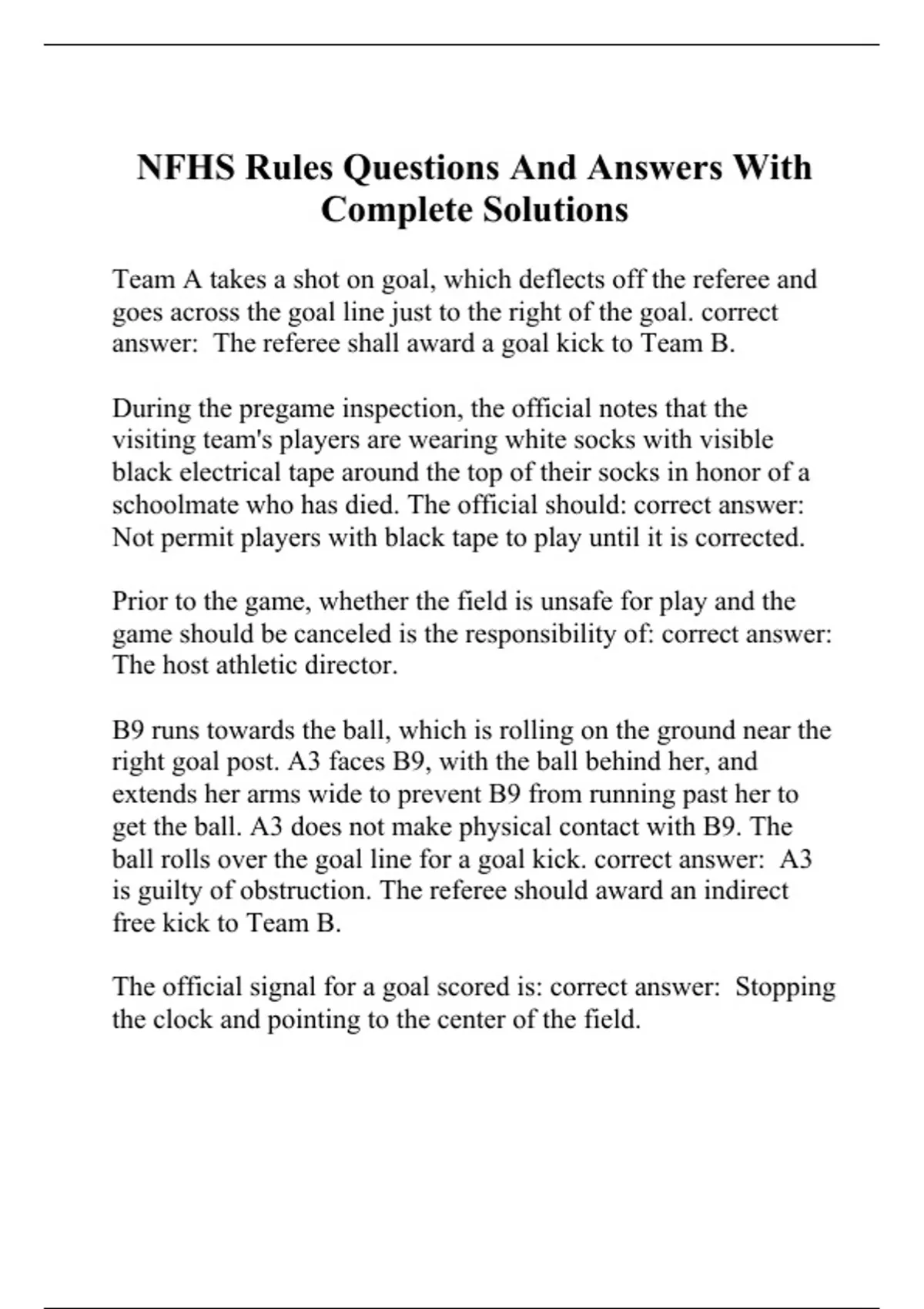nfhs rules questions and answers with complete sol