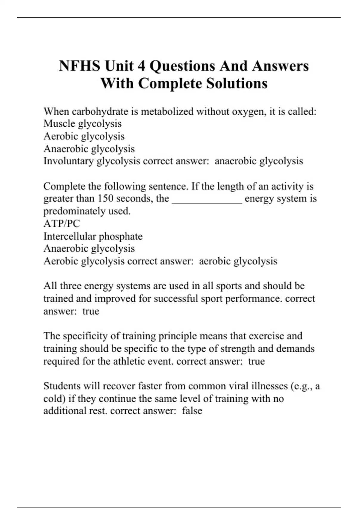 NFHS Unit 4 Questions And Answers With Complete Solutions.