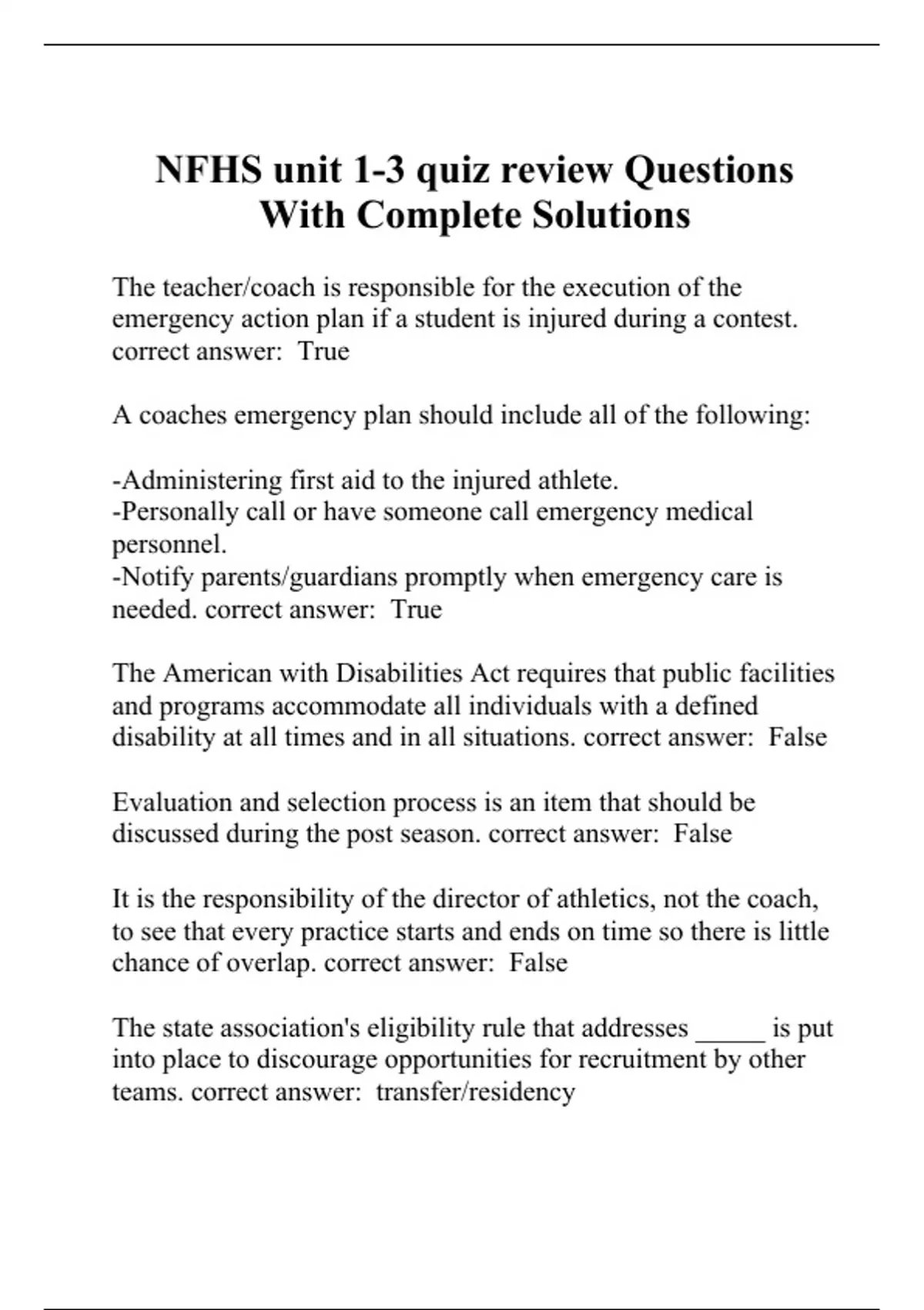 NFHS unit 1-3 quiz review Questions With Complete Solutions