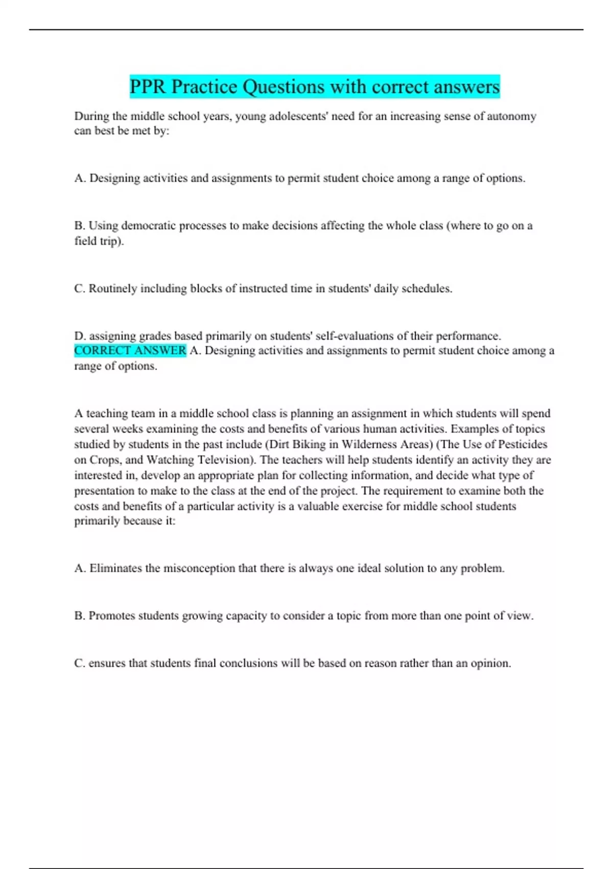 ppr practice questions with correct answers