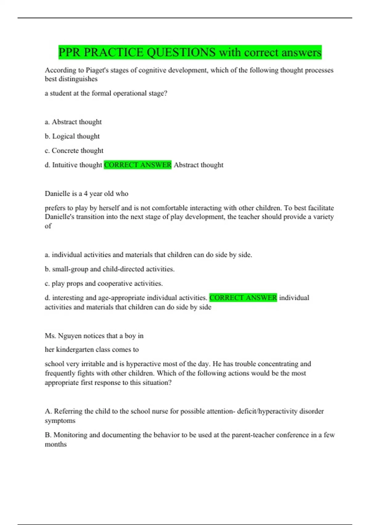 PPR PRACTICE QUESTIONS with correct answers
