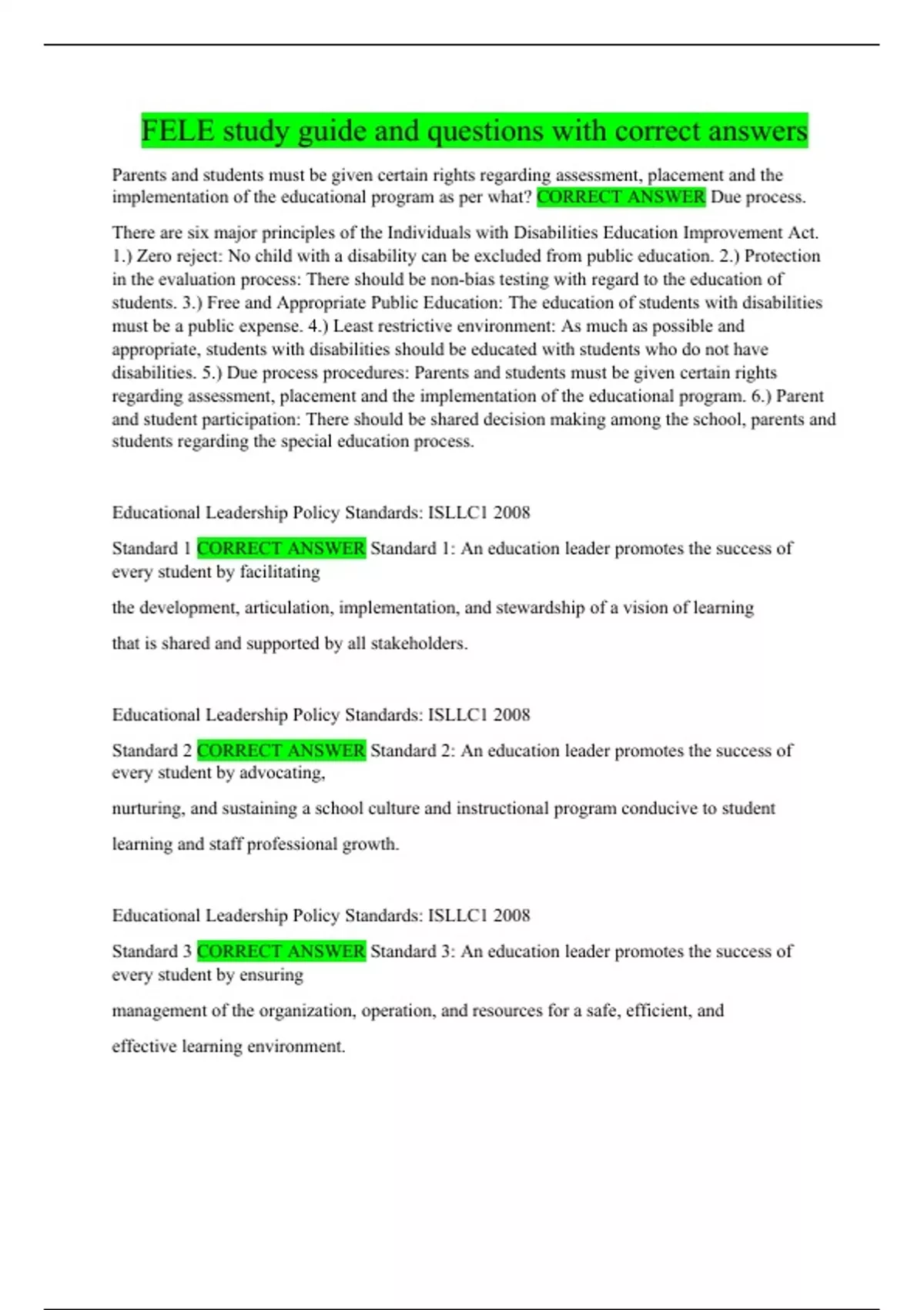 FELE study guide and questions with correct answers