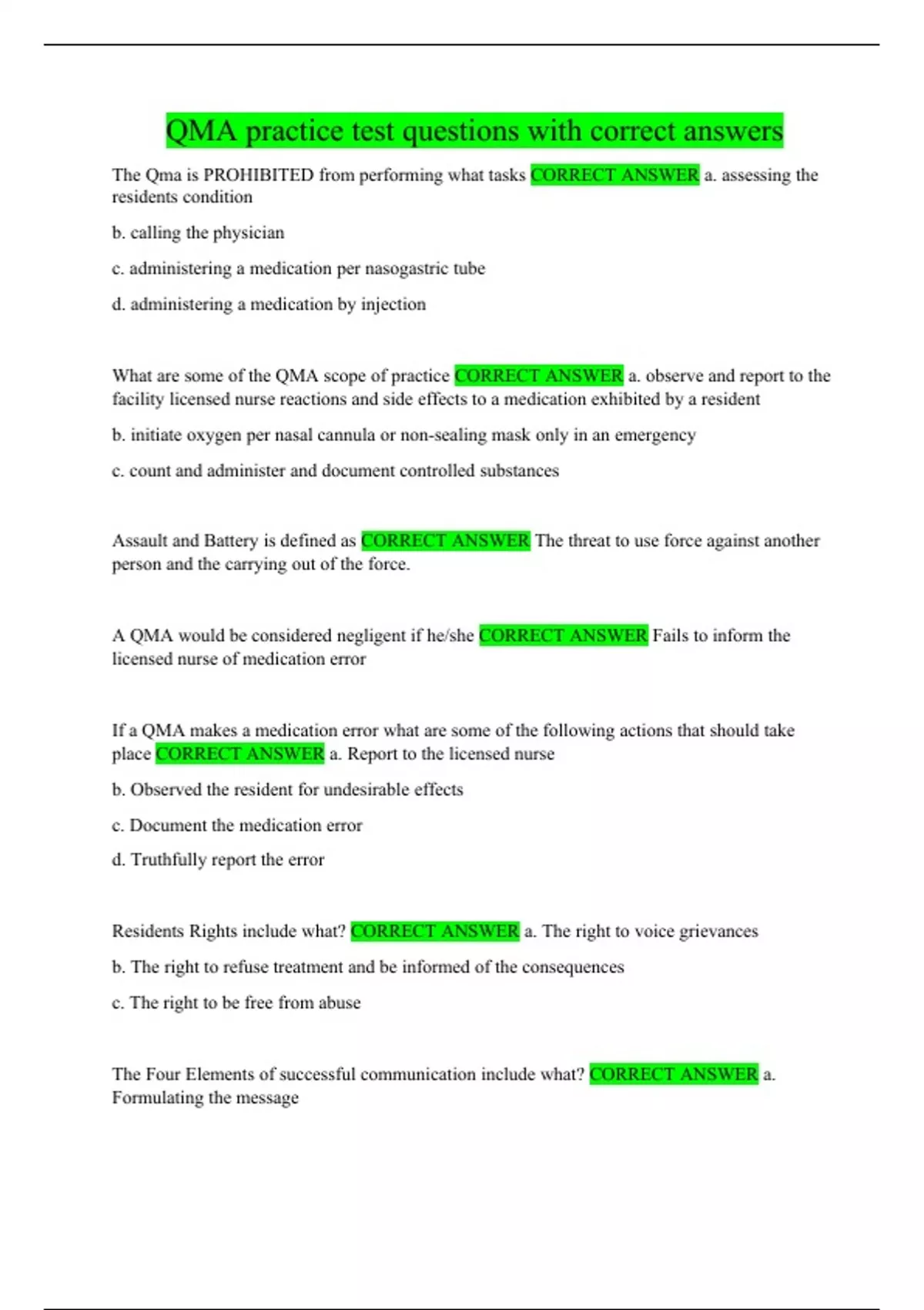 QMA practice test questions with correct answers
