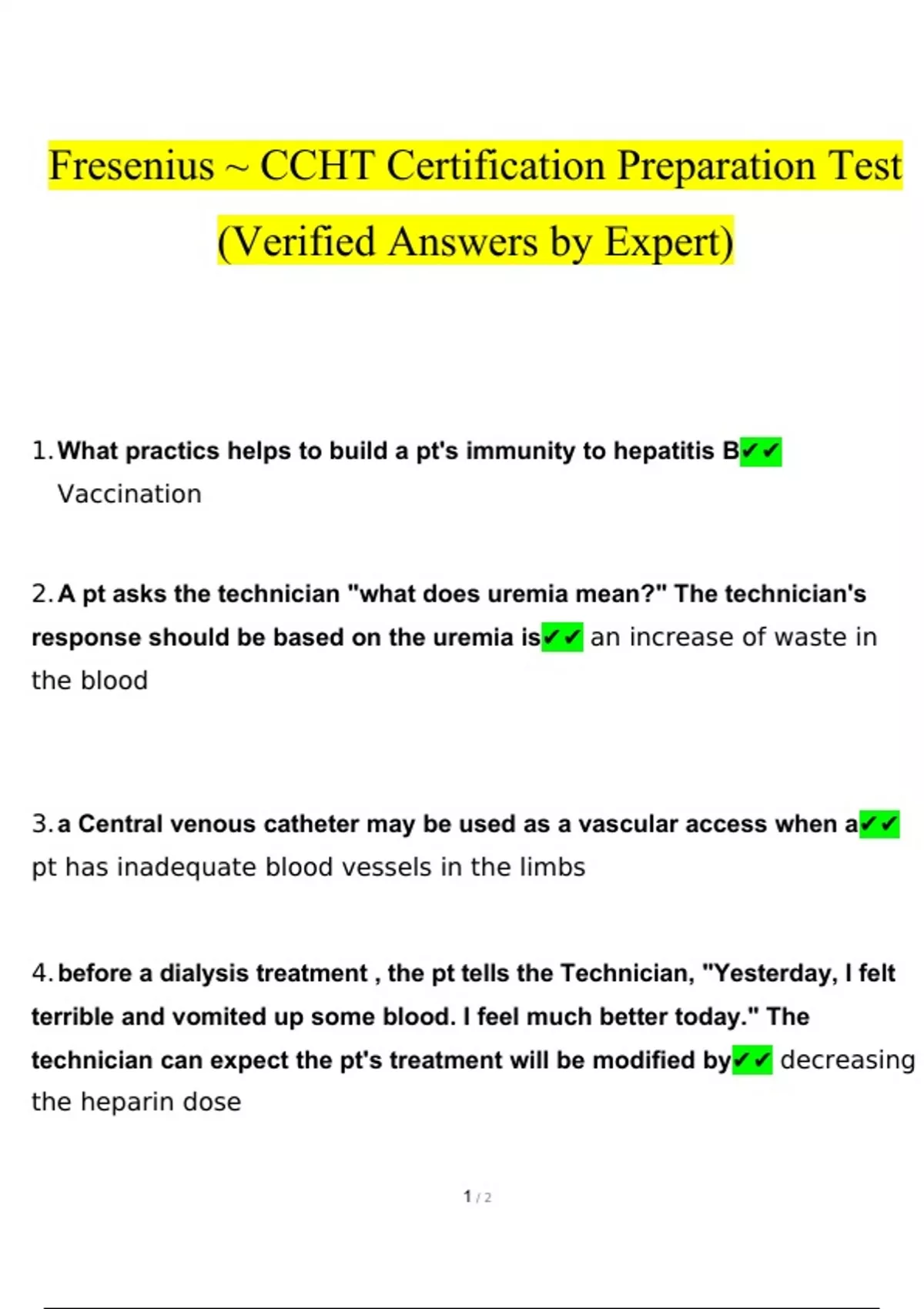 CCHT Certification Preparation Test Questions and Answers Latest [100% correct answers]
