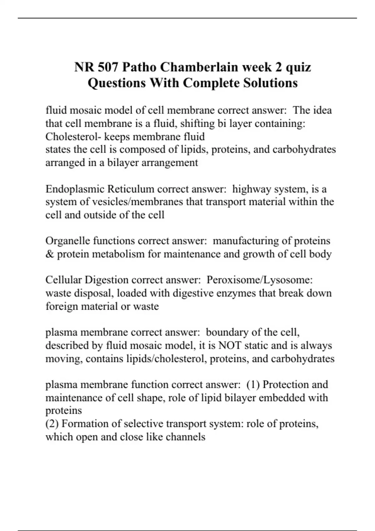 NR 507 Patho Chamberlain week 2 quiz Questions With Complete Solutions