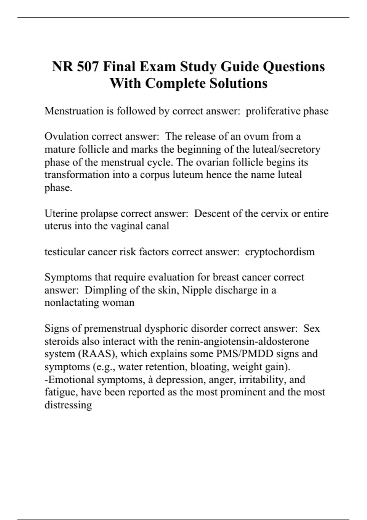 nr 507 final exam study guide questions with compl