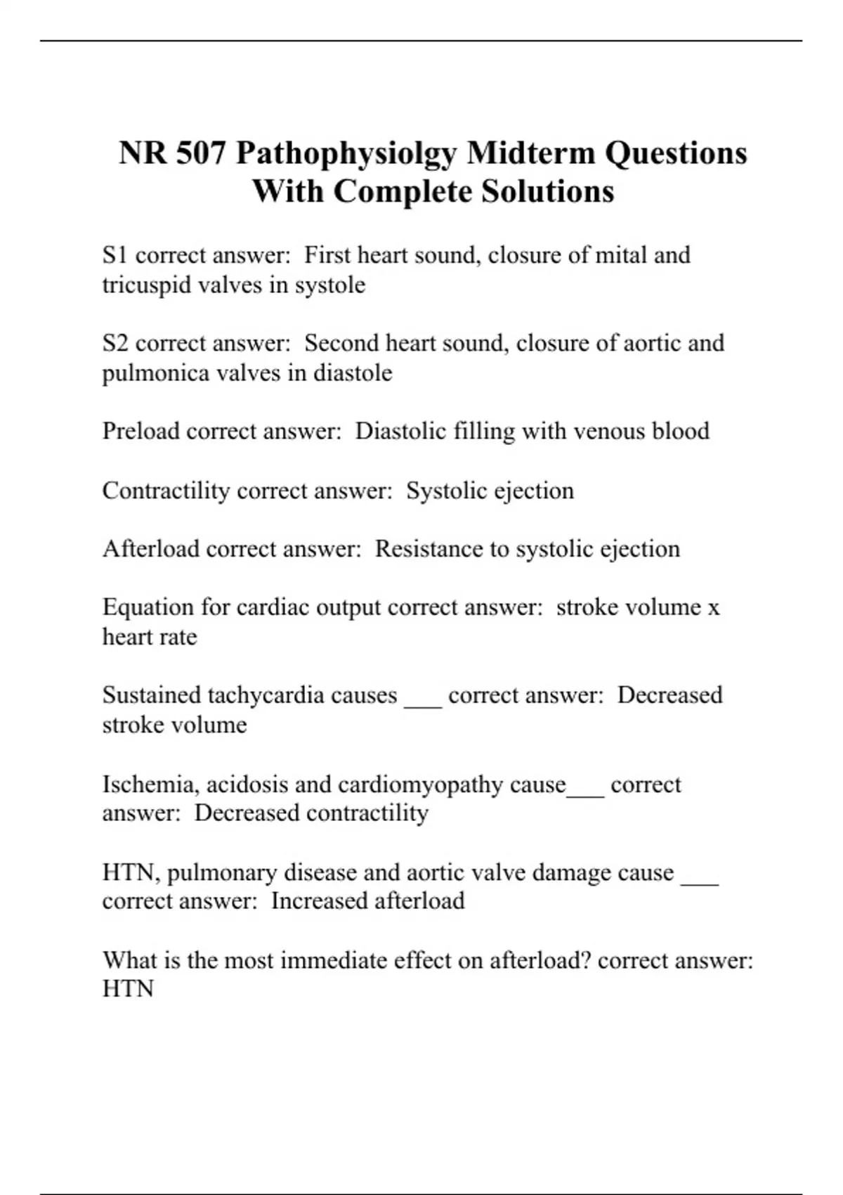 NR 507 Pathophysiolgy Midterm Questions With Complete Solutions.
