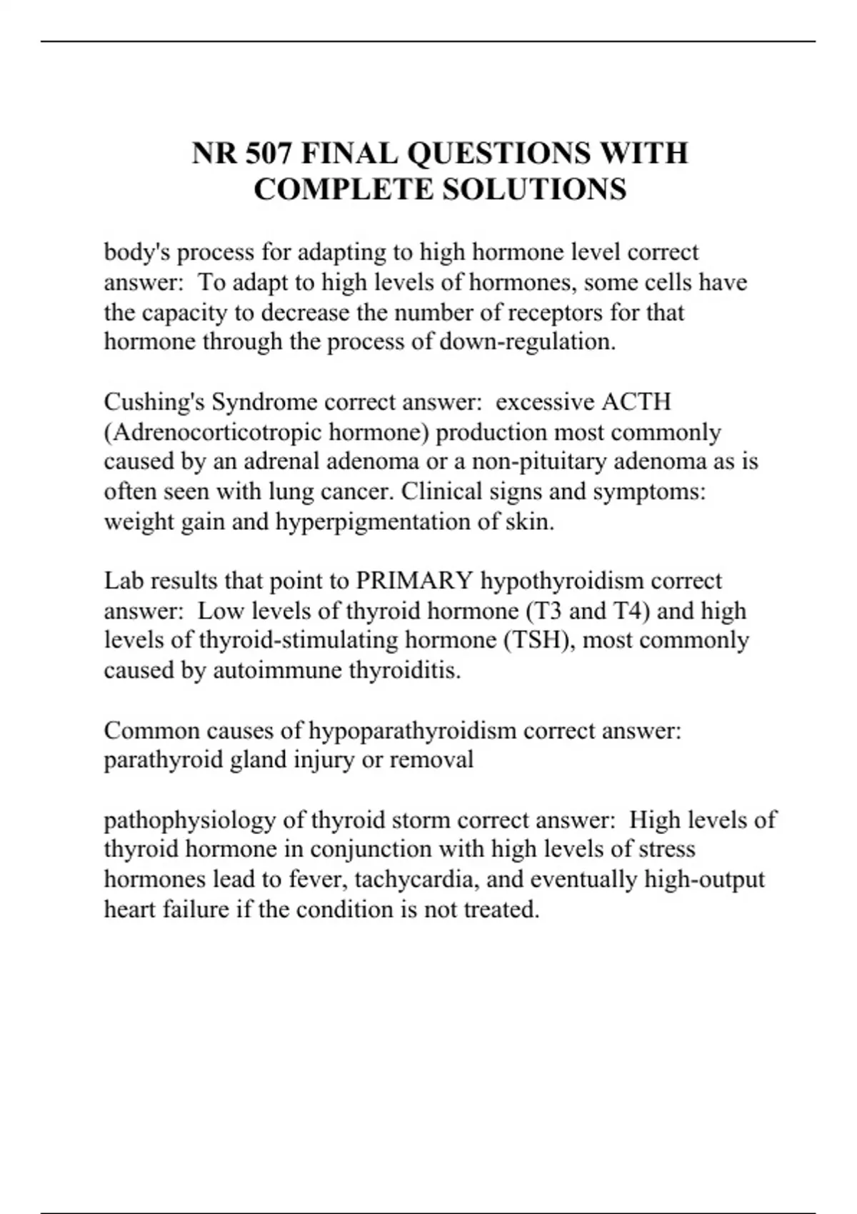 nr 507 final questions with complete solutions