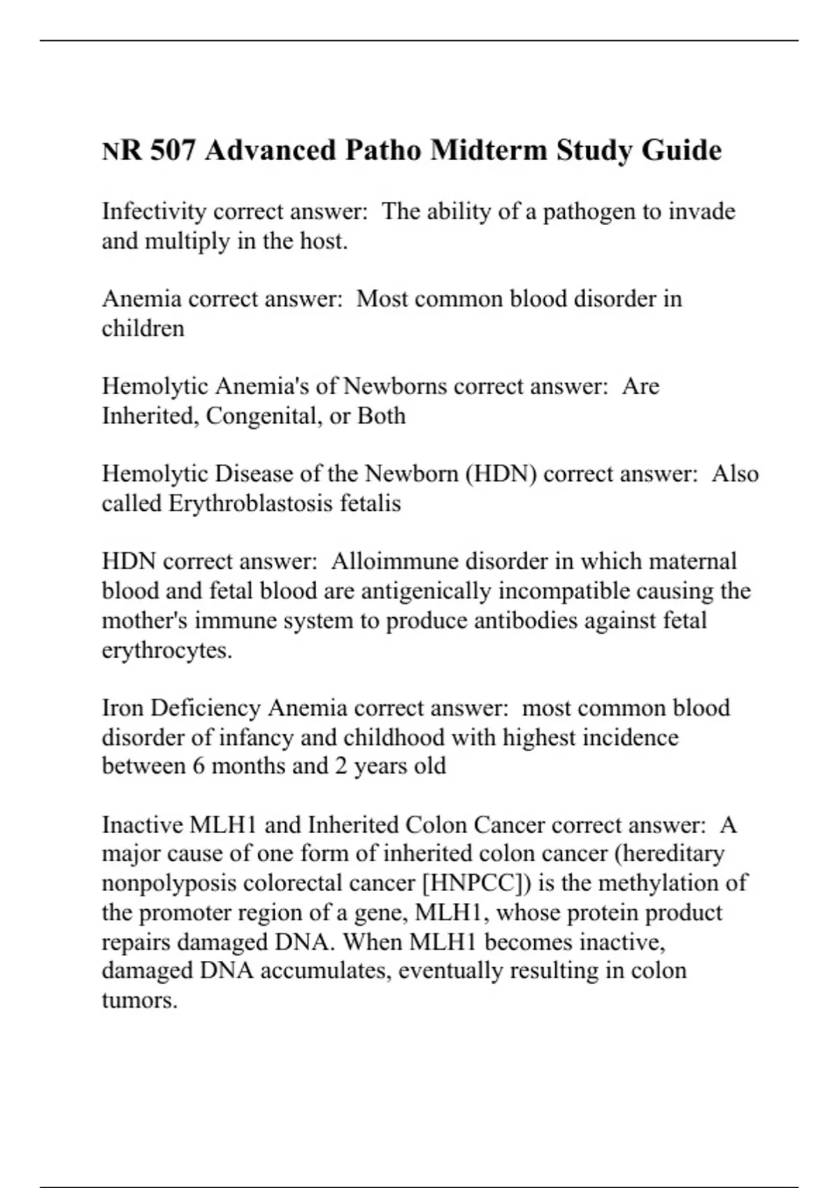Advanced Pathology NR 507- final exam Questions With Complete Solutions