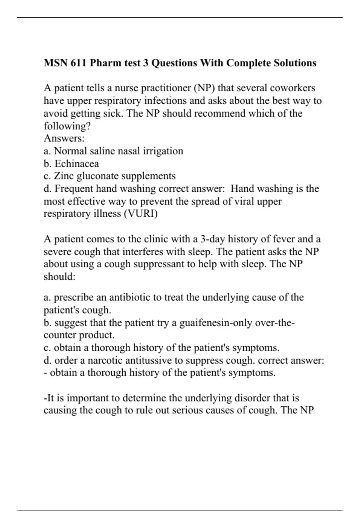 MSN 611 Pharm test 3 Questions With Complete Solutions