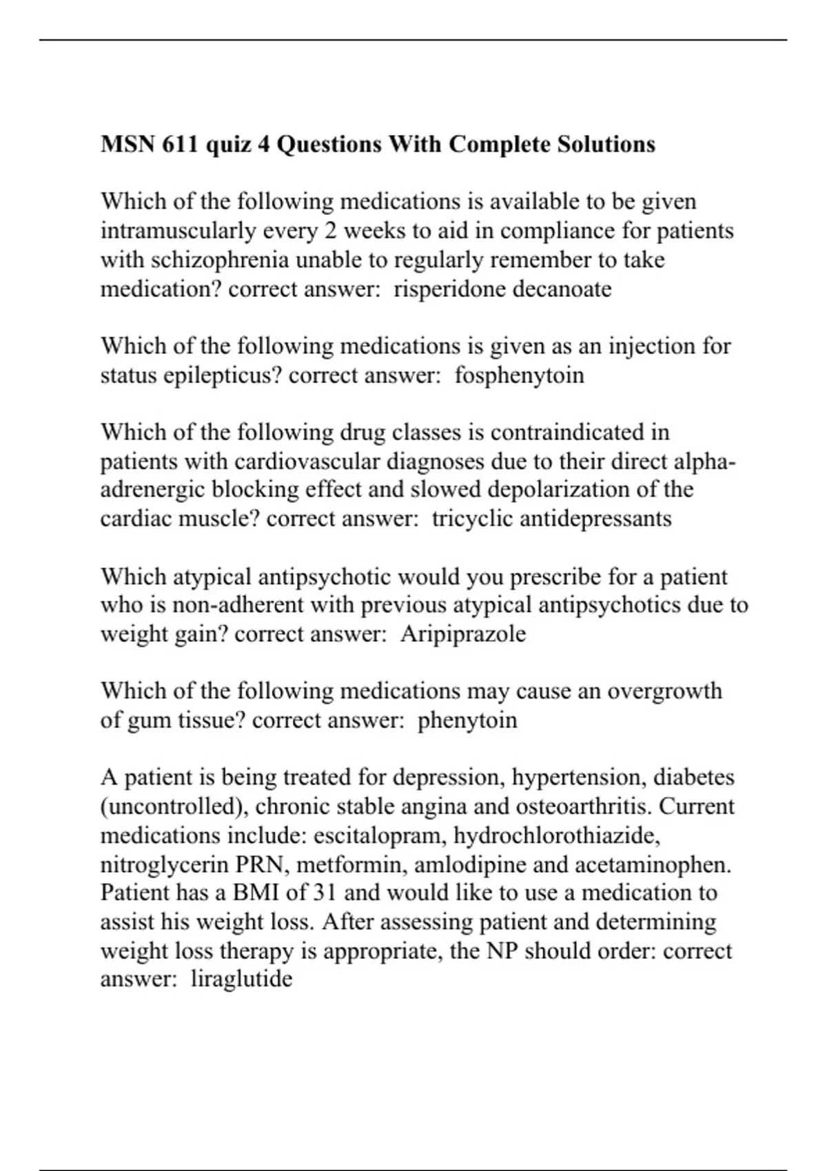 MSN 611 quiz 4 Questions With Complete Solutions.