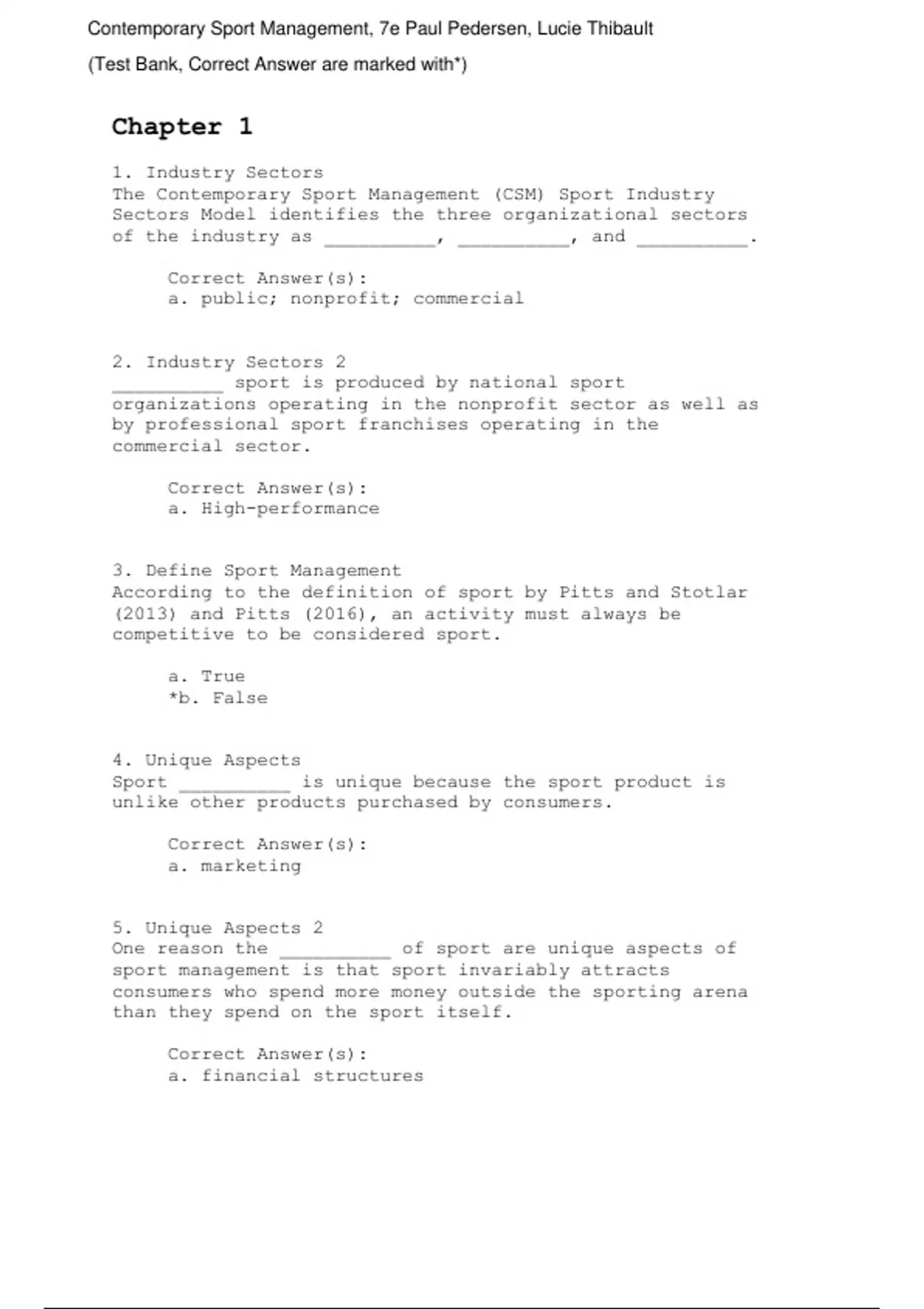 Test Bank For Contemporary Sport Management 7th Edition By Paul Pedersen, Lucie Thibault (All Chapters, 100% Original Verified, A+ Grade)