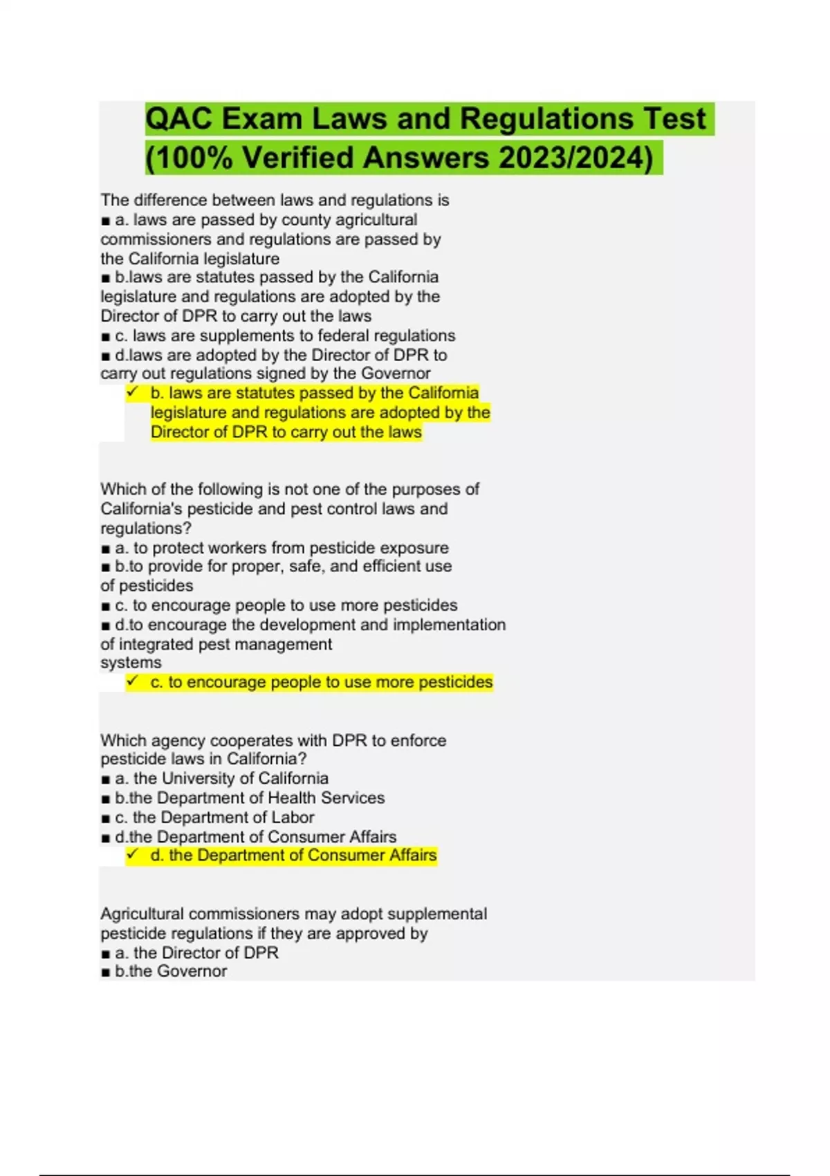 QAC Laws and Regulations Exam Questions With Answers (100% Verified Answers 2023/2024)