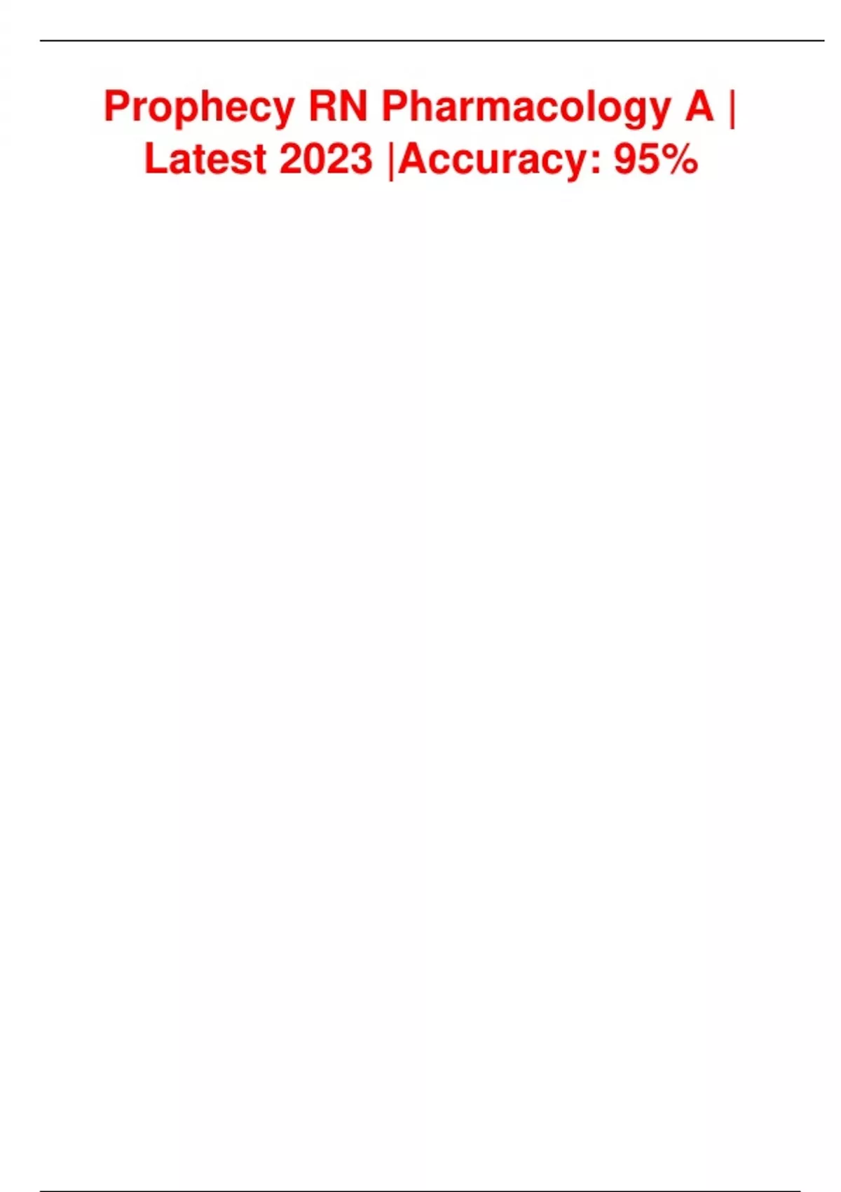 Prophecy RN Pharmacology A | Latest 2023 |Accuracy: 95%