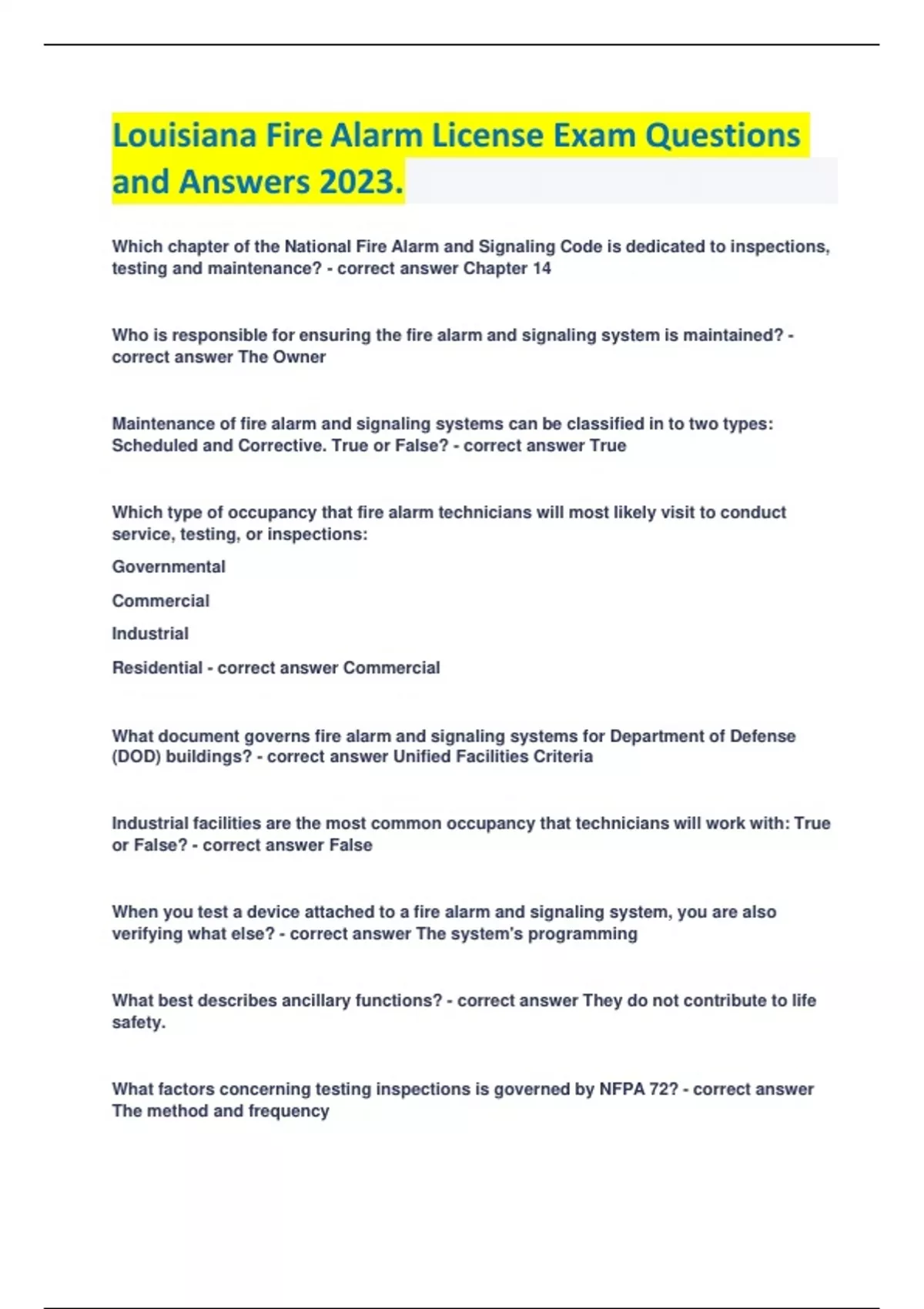 Louisiana Fire Alarm License Exam Questions and Answers 2023.