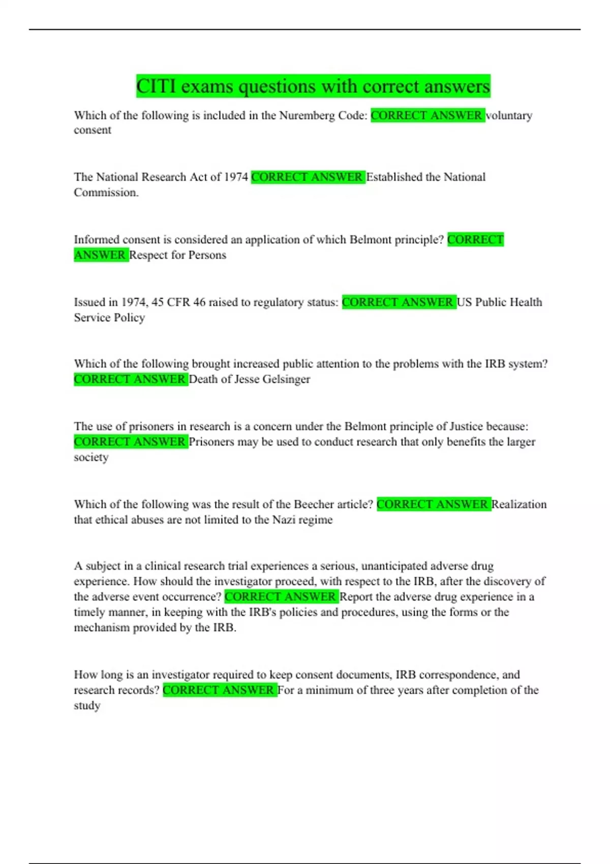 Collaborative Institutional Training Initiative (CITI ) TESTS BUNDLE SET