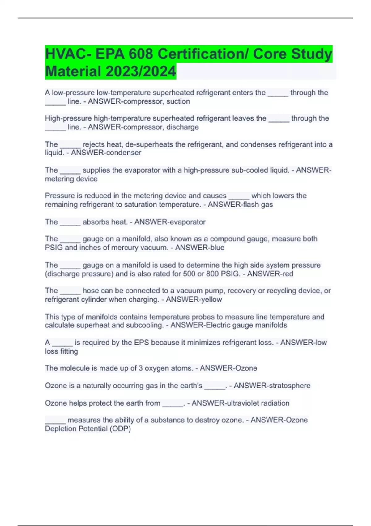 HVAC- EPA 608 Certification/ Core Study Material 2023/2024
