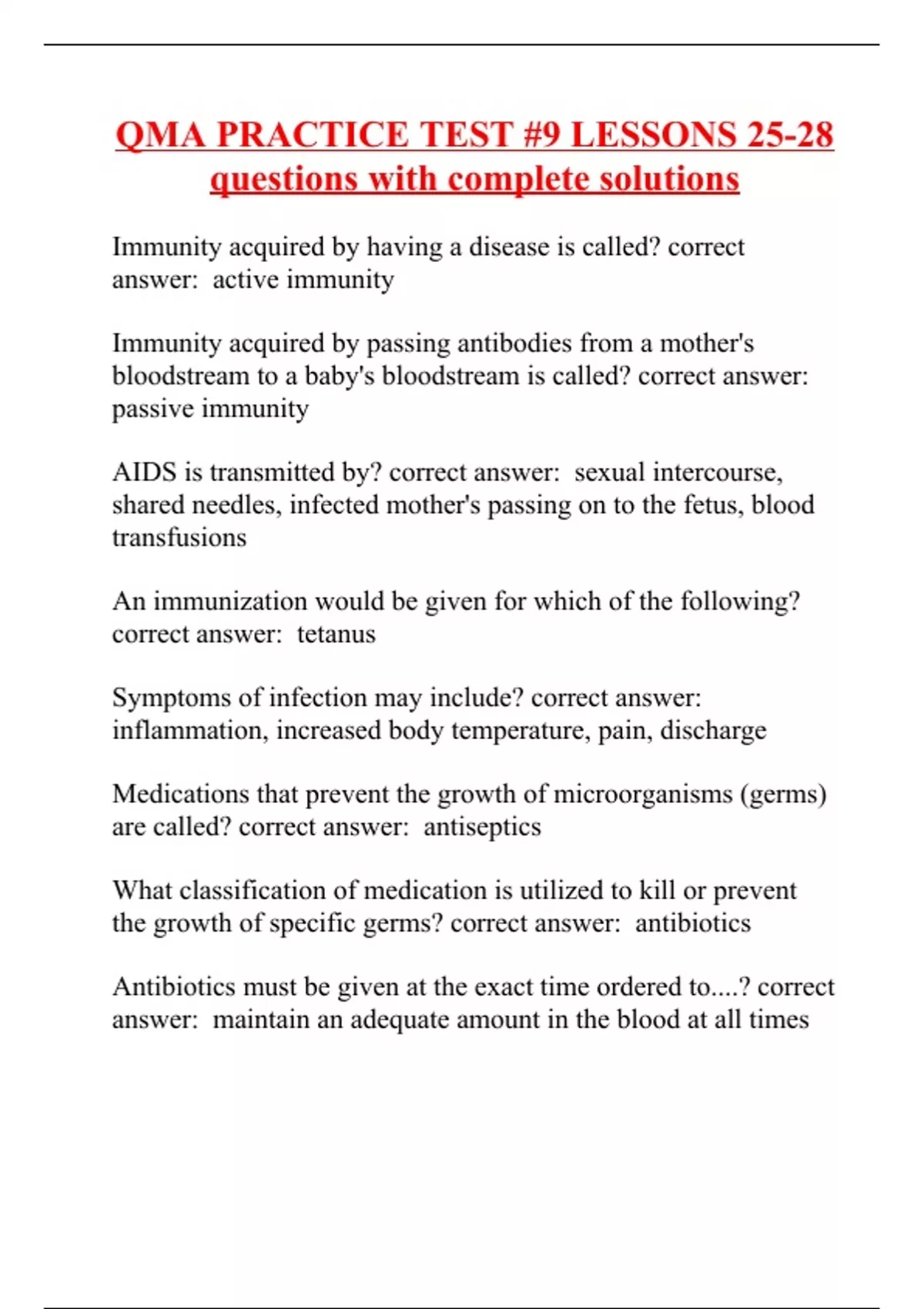 QMA PRACTICE TEST #9 LESSONS 25-28 questions with complete solutions