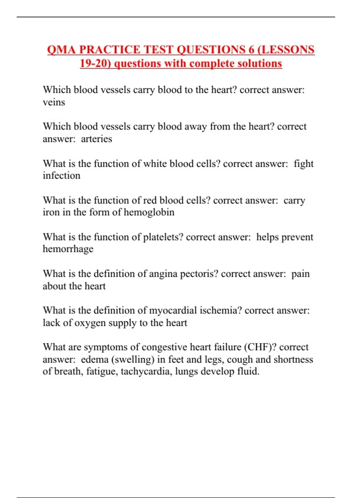 QMA PRACTICE TEST QUESTIONS 6 (LESSONS 19-20) questions with complete solutions