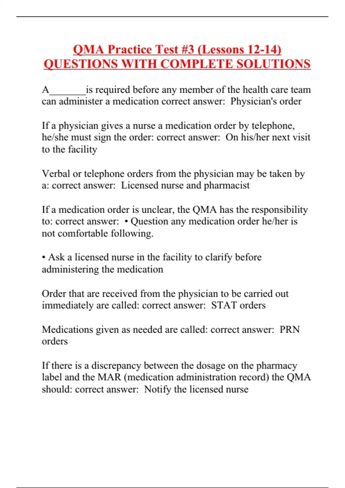QMA Practice Test #3 (Lessons 12-14) QUESTIONS WITH COMPLETE SOLUTIONS