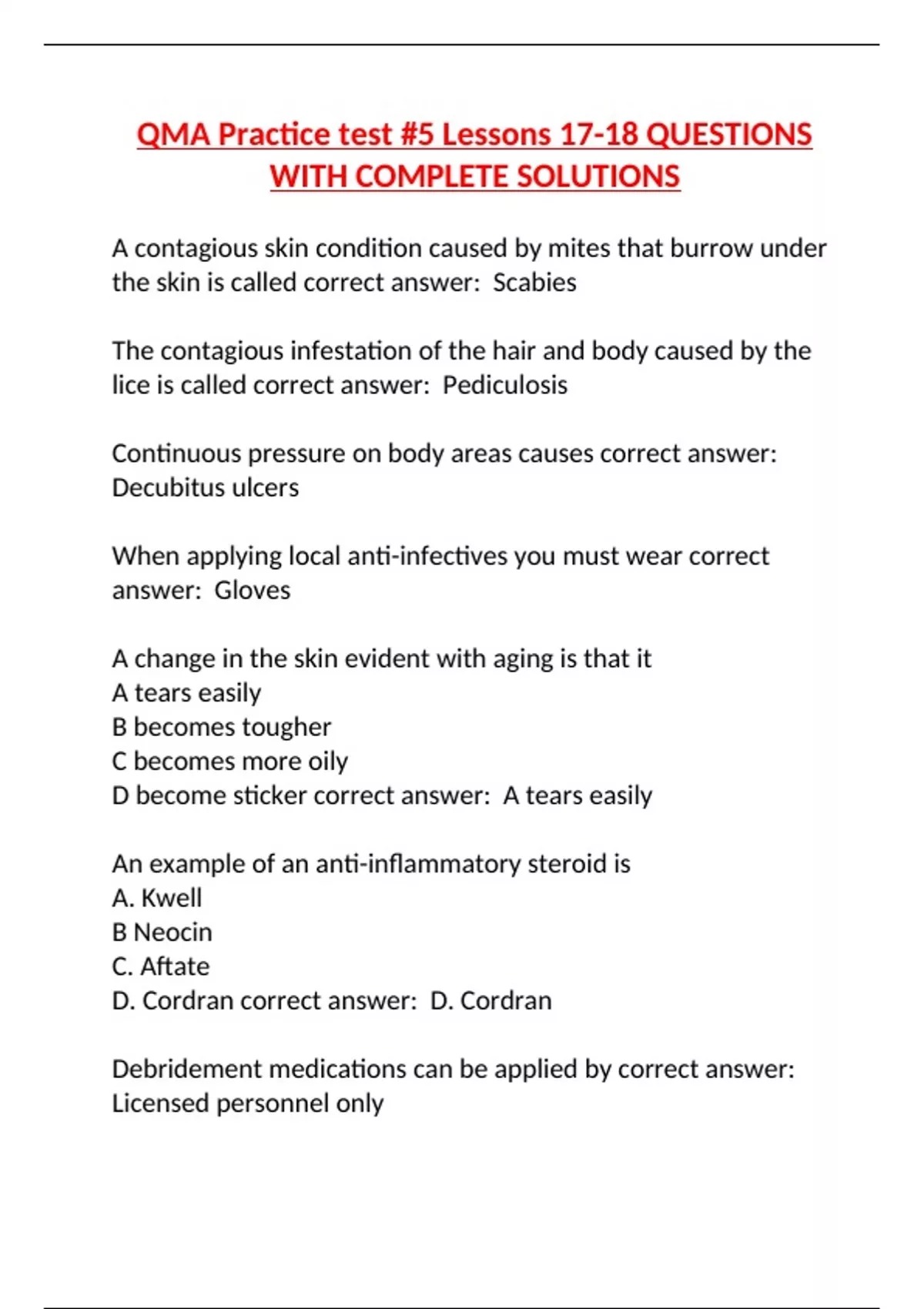 QMA Practice test #5 Lessons 17-18 QUESTIONS WITH COMPLETE SOLUTIONS