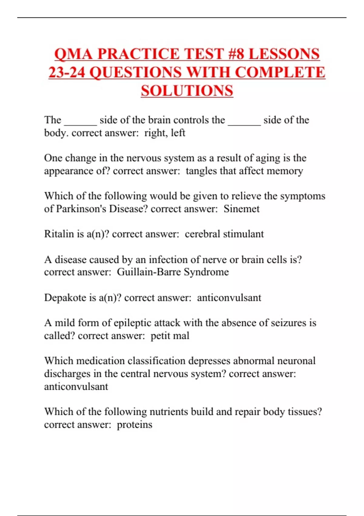QMA PRACTICE TEST #8 LESSONS 23-24 QUESTIONS WITH COMPLETE SOLUTIONS