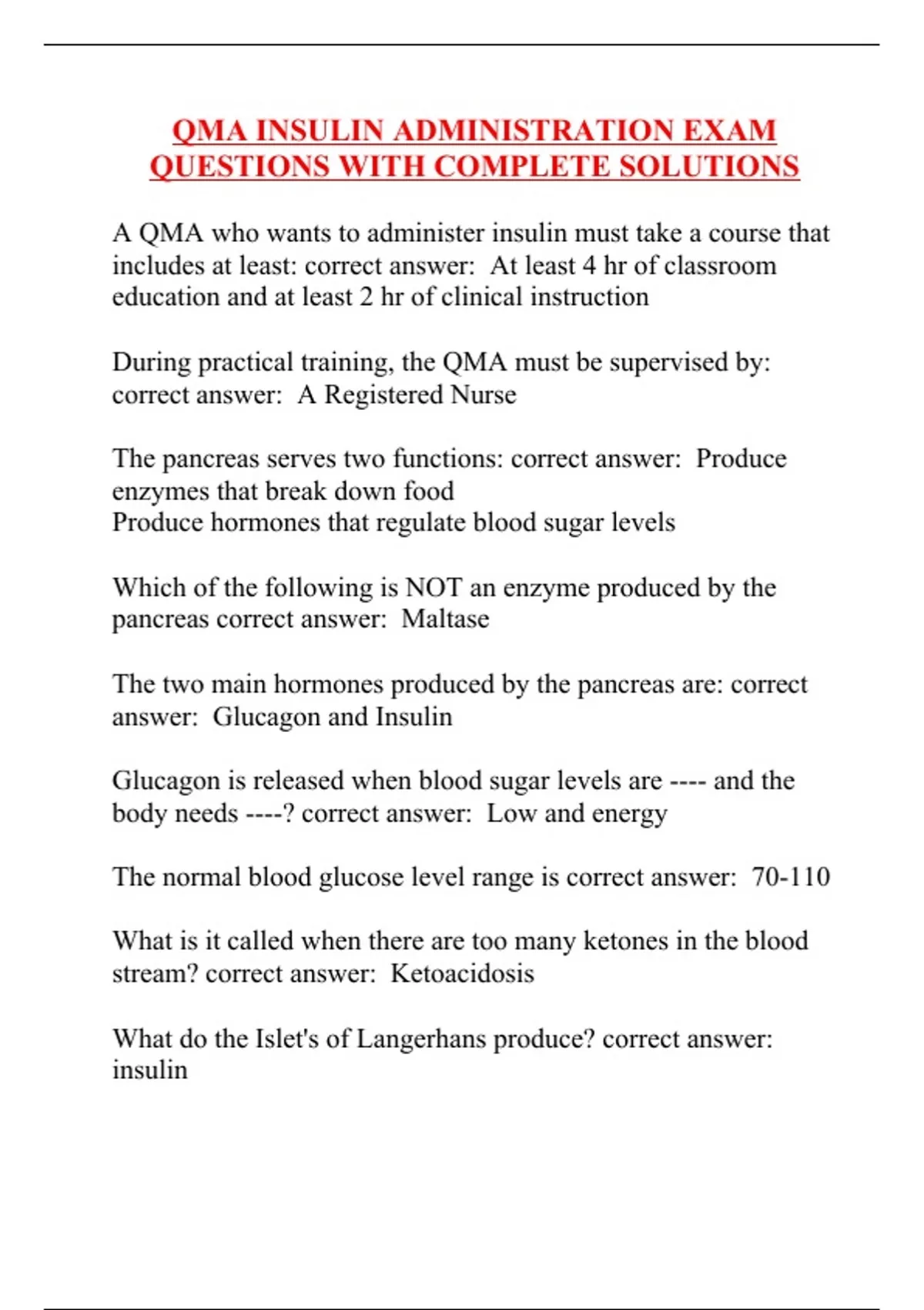 qma insulin administration exam questions with com