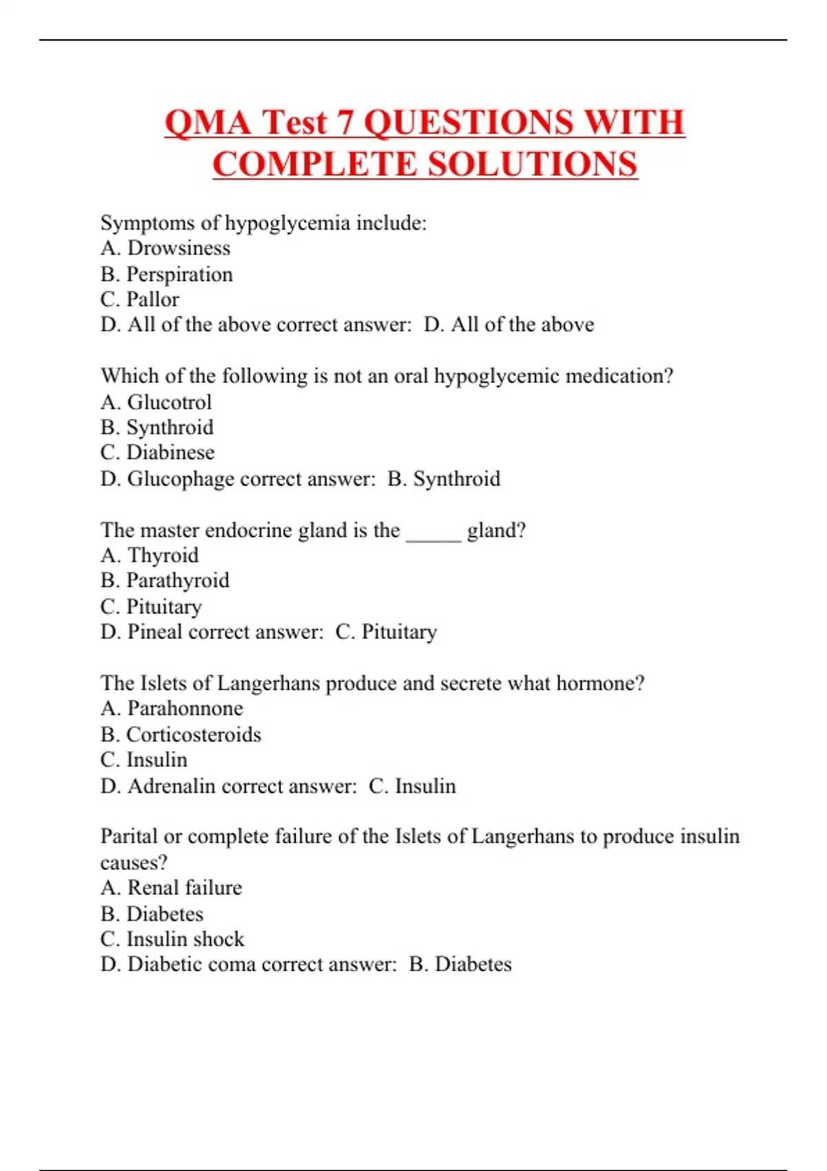 QMA Test 7 QUESTIONS WITH COMPLETE SOLUTIONS.