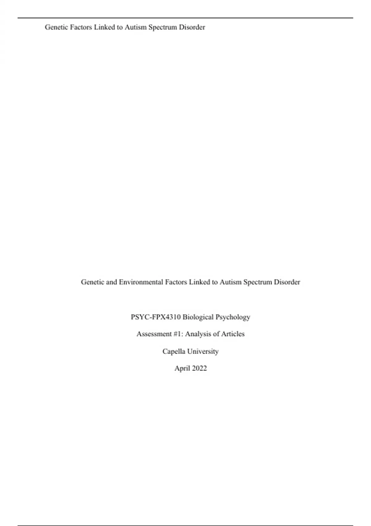 PSYC-FPX4310 Assessment 1 Genetic and Environmental Factors Linked to Autism Spectrum Disorder.docx