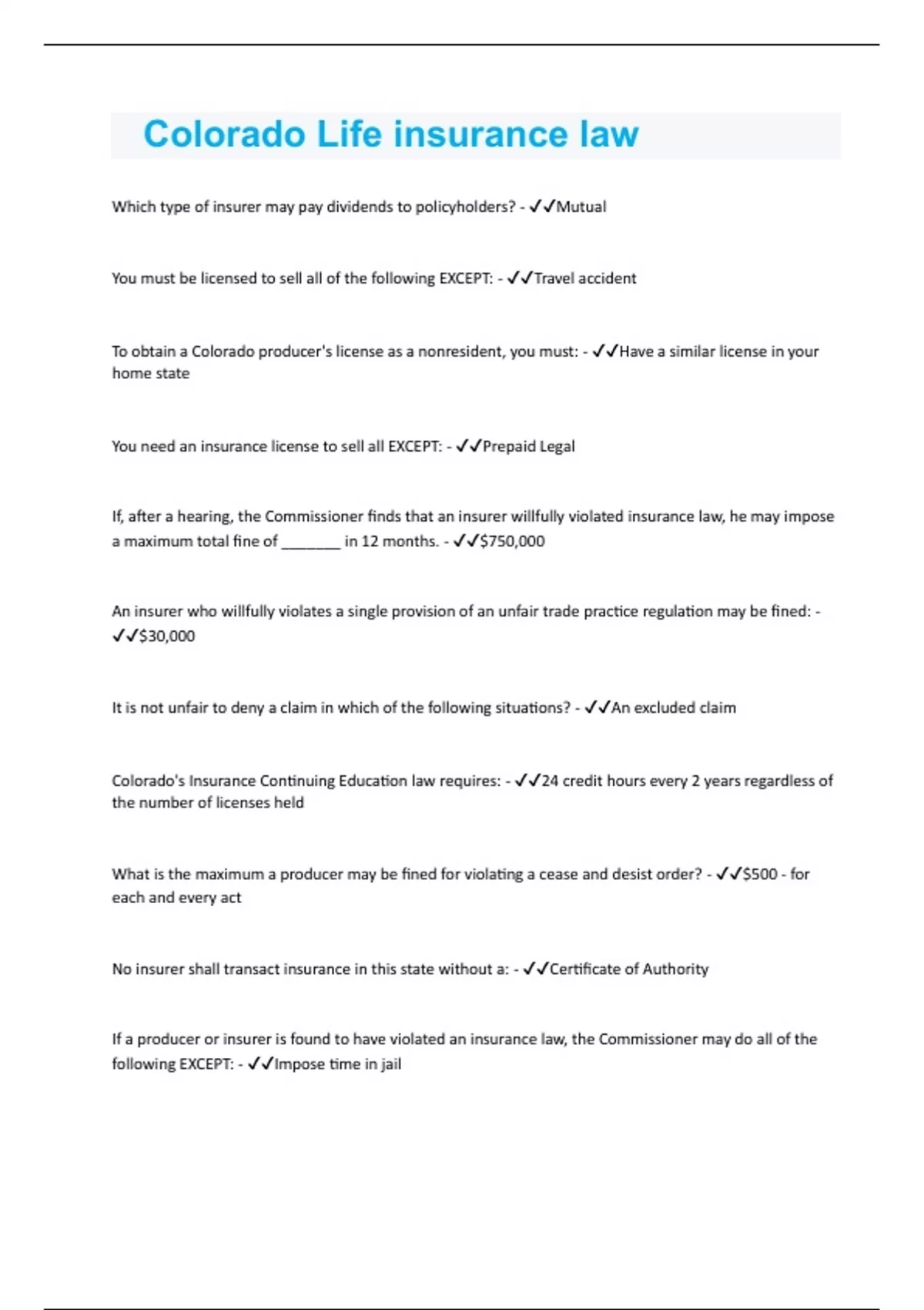Colorado's Insurance Continuing Education law requires: - ✔✔24 credit hours every 2 years regardless of