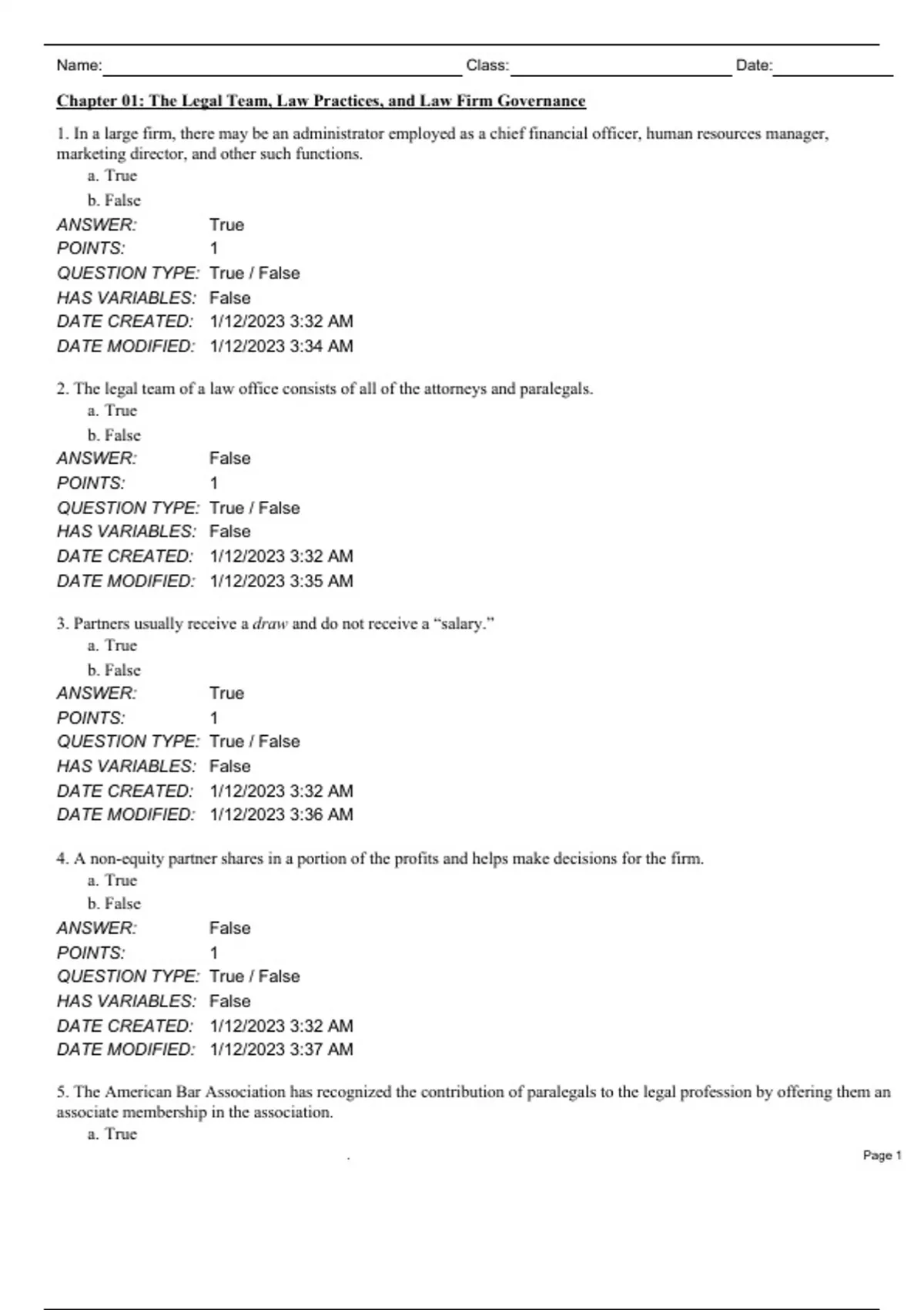 Chapter 01: The Legal Team, Law Practices, and Law Firm Governance