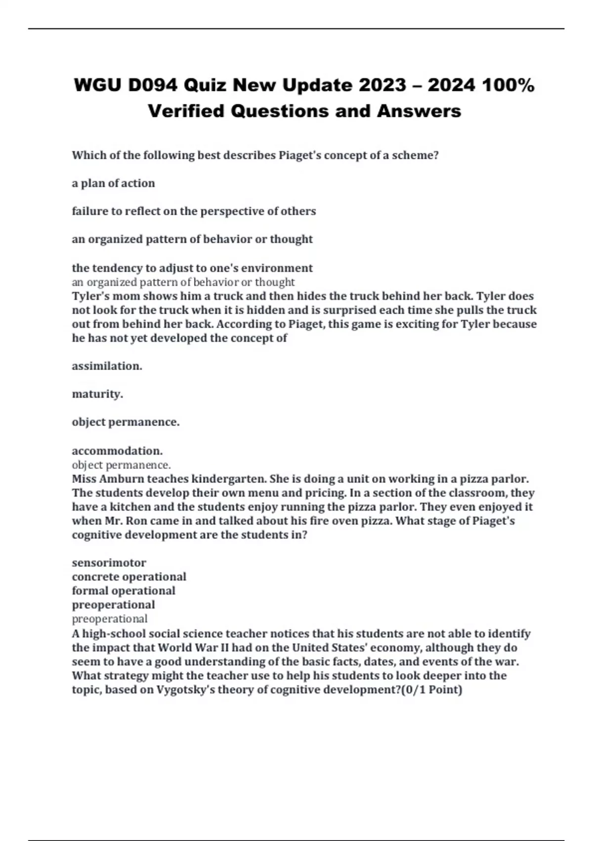 WGU D094 Quiz New Update 2023 – 2024 100% Verified Questions and Answers