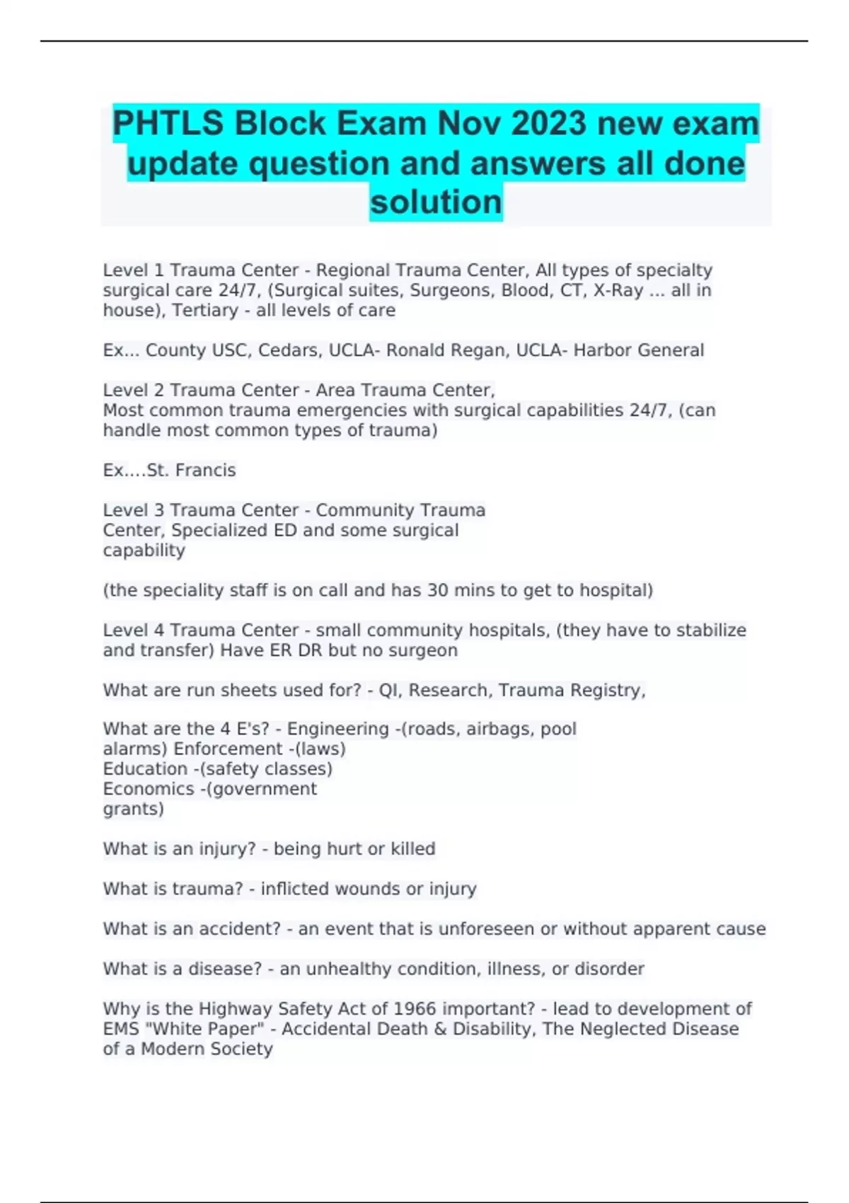 VALUE PACK FOR PHTLS Pretest, Post test, Block Exams Bundled with Complete Solutions 2023 RATED A+
