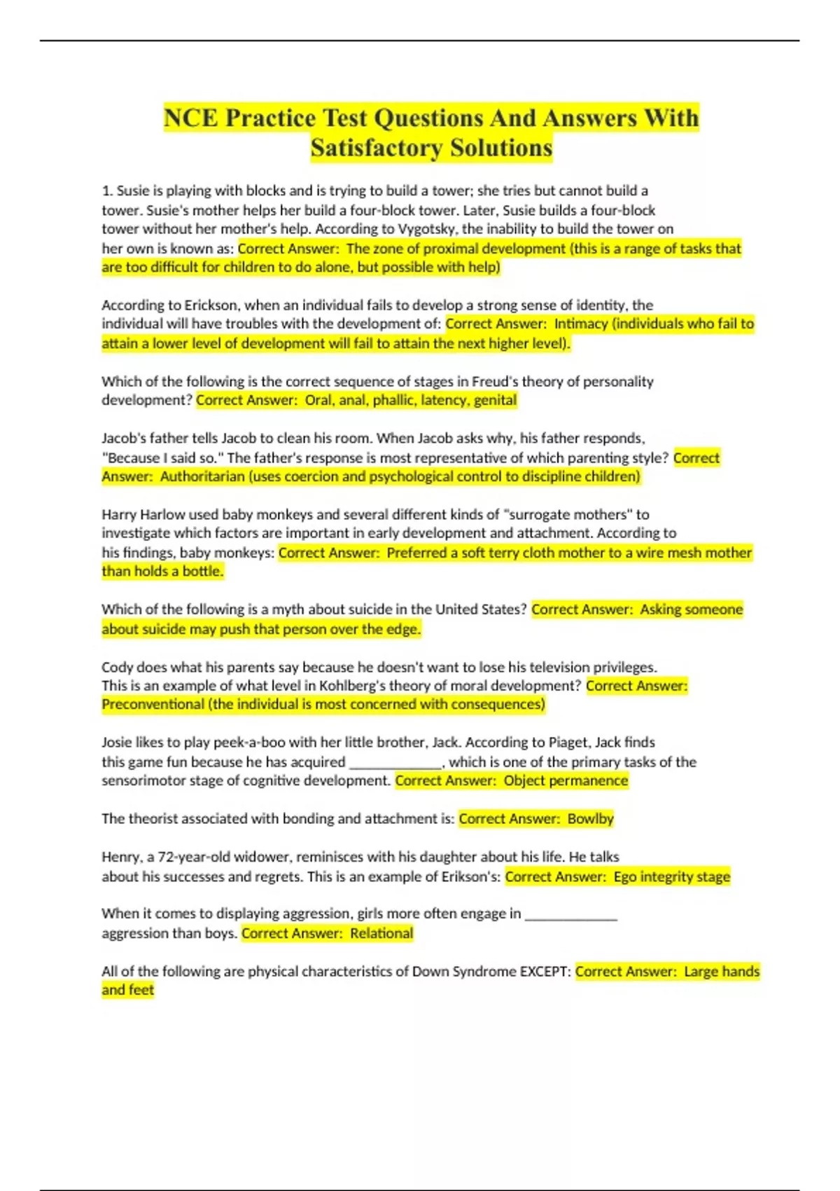 NCE Practice Test Questions And Answers With Satisfactory Solutions.