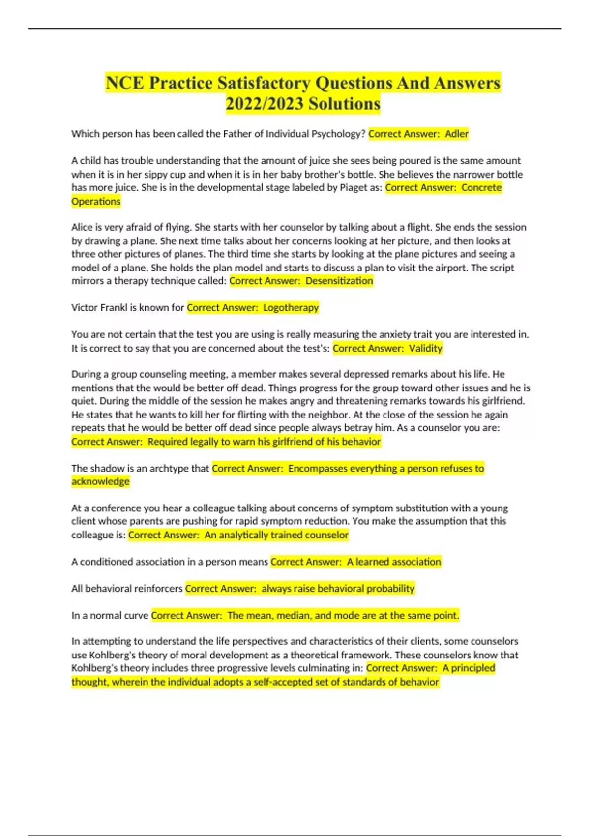 NCE Practice Satisfactory Questions And Answers 2022/24