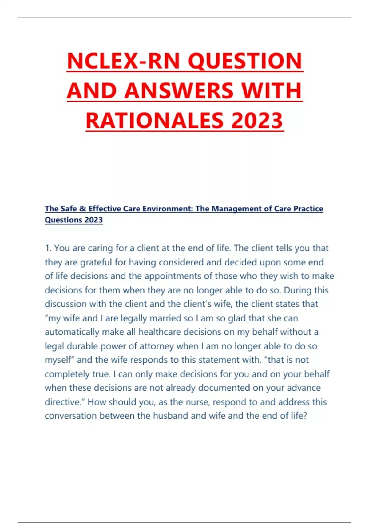 NCLEX-RN QUESTION AND ANSWERS WITH RATIONALES 2023
