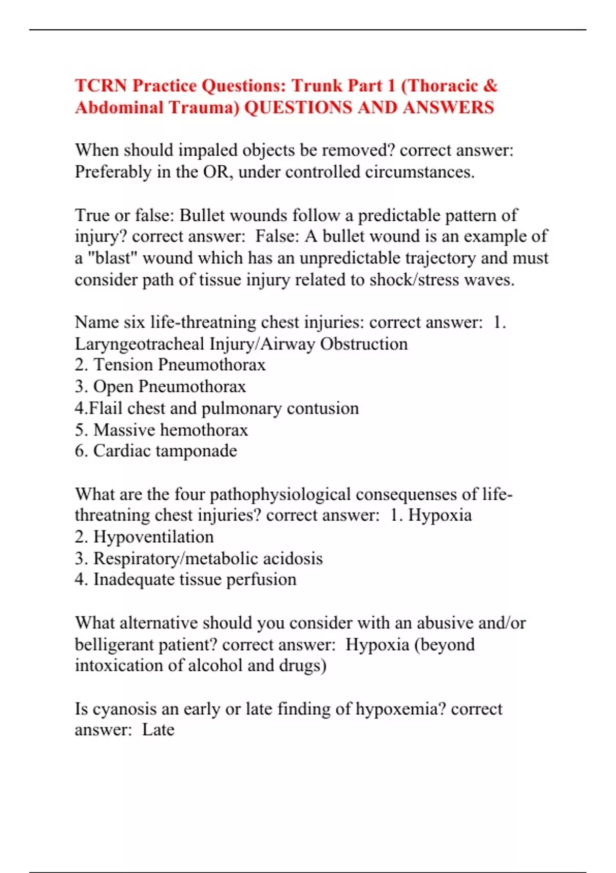 TCRN Practice Questions: Trunk Part 1 (Thoracic & Abdominal Trauma) QUESTIONS AND ANSWERS