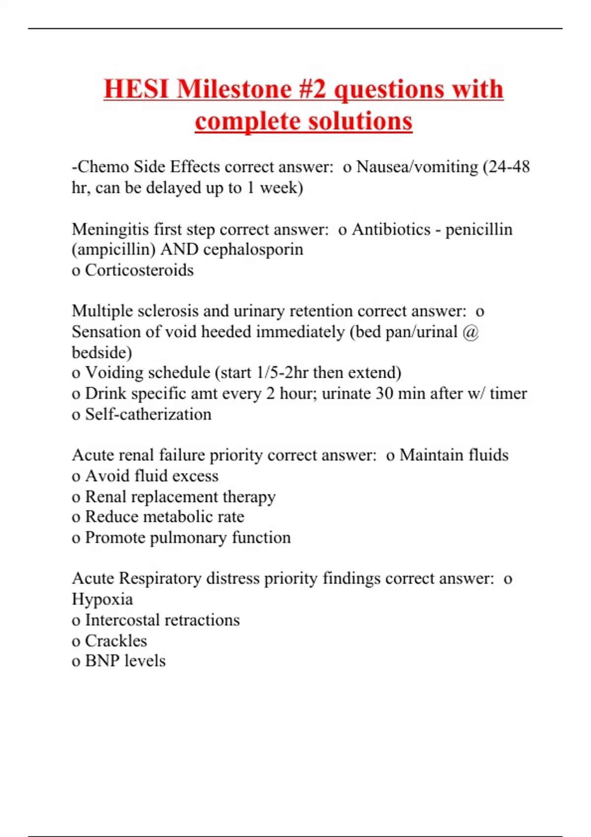 HESI Milestone #2 questions with complete solutions