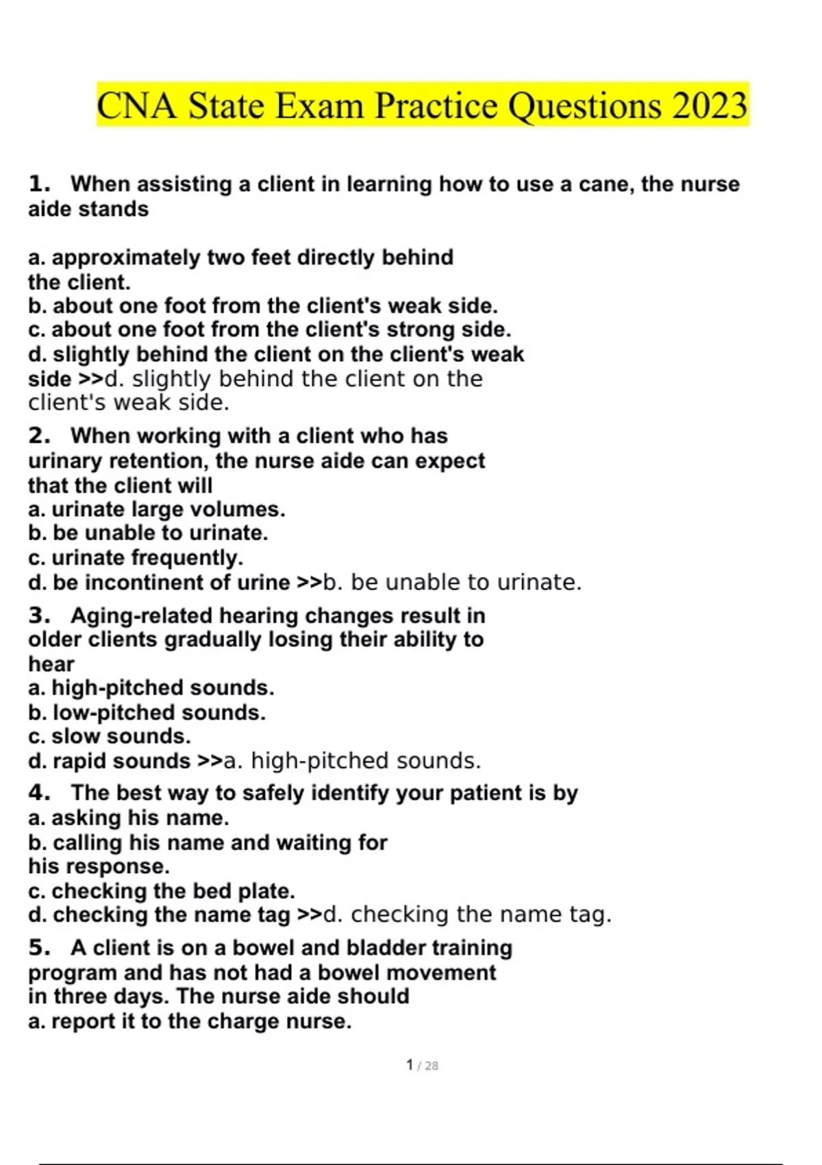 CNA State Exam Practice Questions and Answers Latest [100% correct answers]