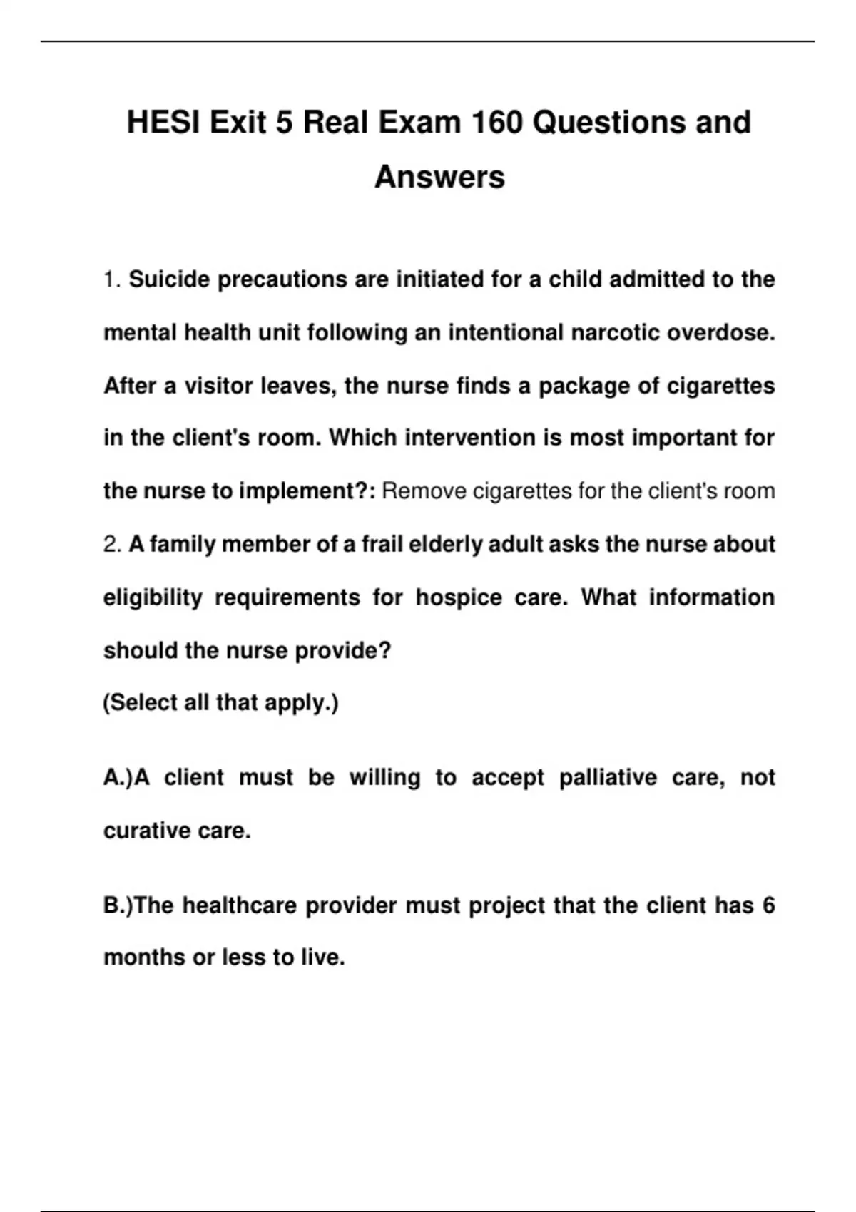 HESI Exit 5 Real Exam 160 Questions and Answers