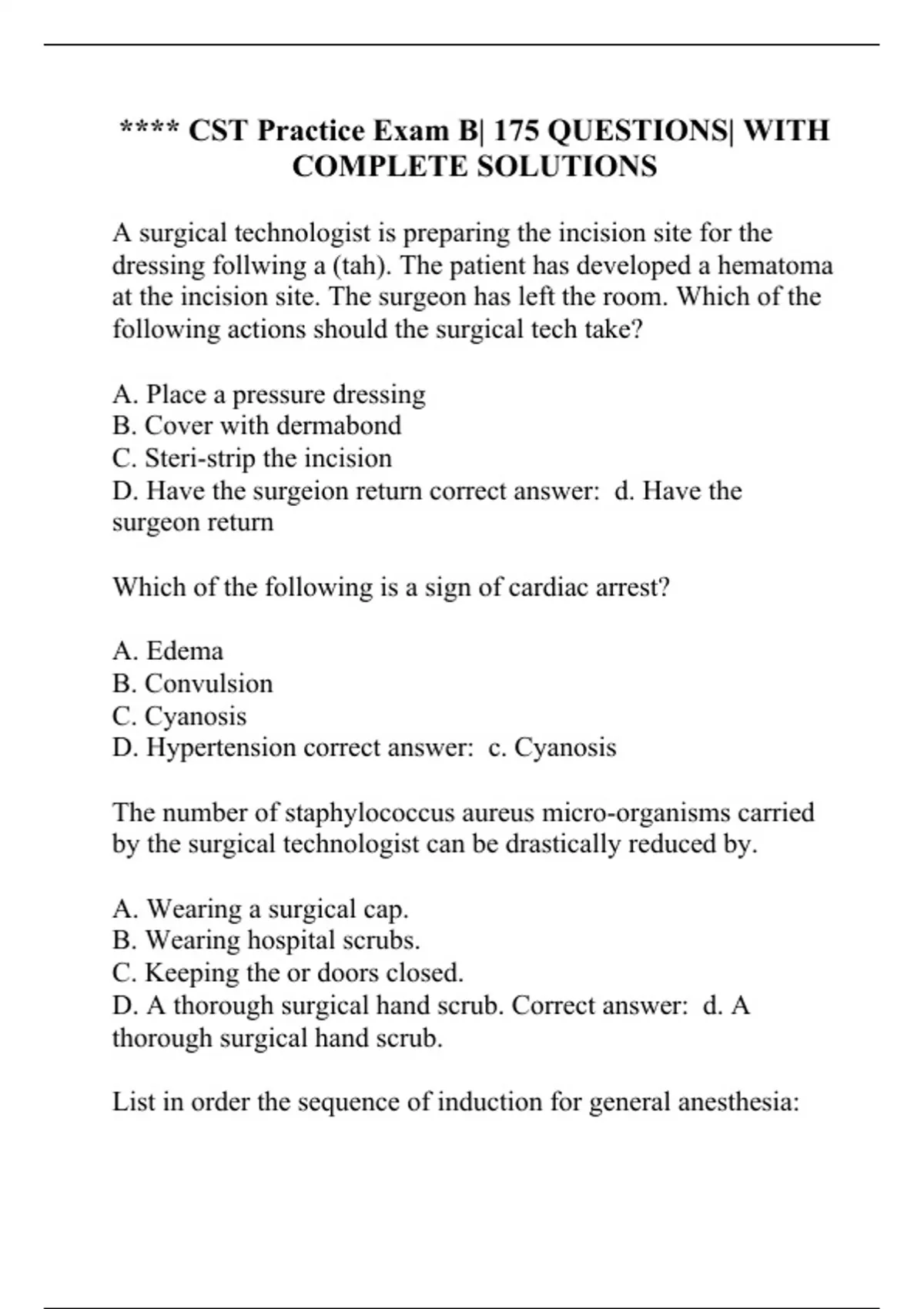 **** CST Practice Exam B| 175 QUESTIONS| WITH COMPLETE SOLUTIONS