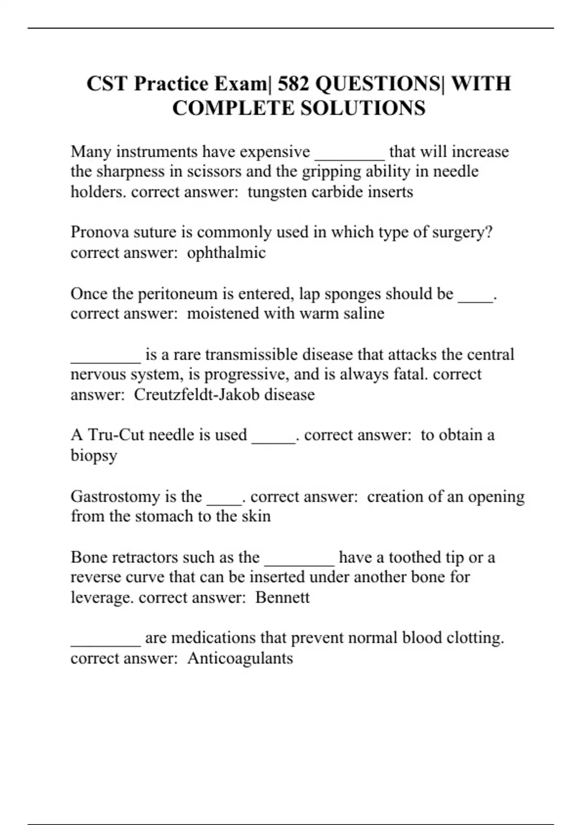 CST Practice Exam| 582 QUESTIONS| WITH COMPLETE SOLUTIONS