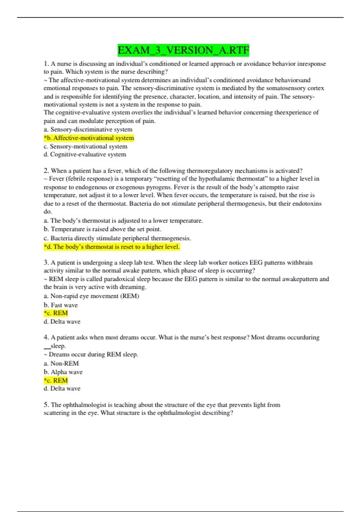 NURSINGTB EXAM 3 VERSION A | COMPLETE SOLUTION