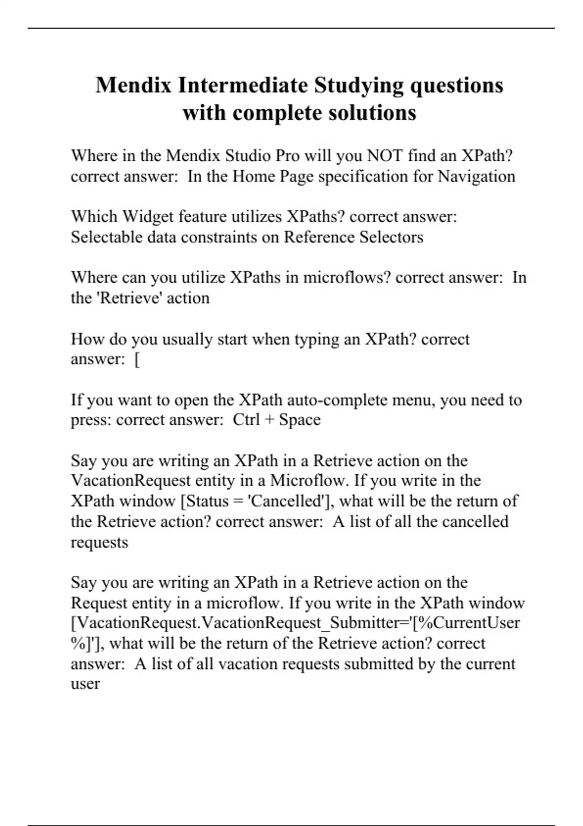 Mendix Intermediate Studying questions with complete solutions.