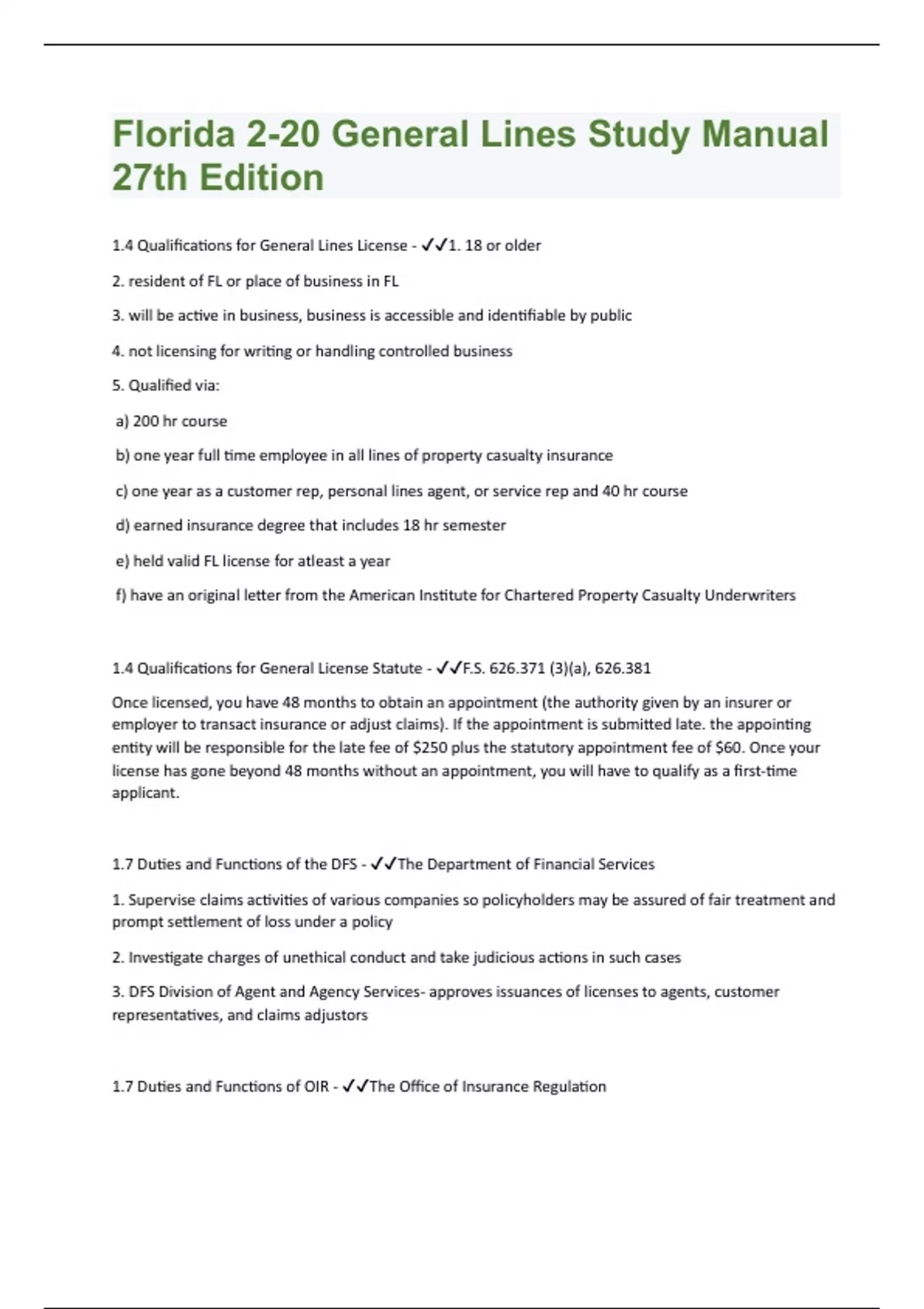 - Florida 2-20 General Lines Study Manual 27th Editi