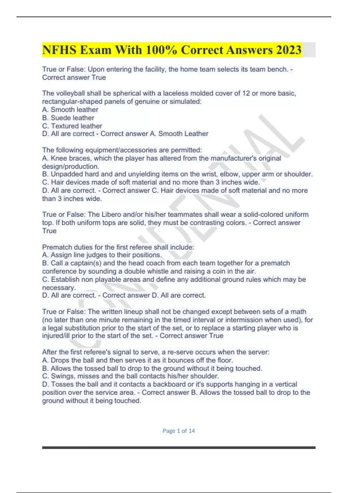 NFHS Exam With 100% Correct Answers 2023 NFHS Exam With 100% Correct Answers 2023