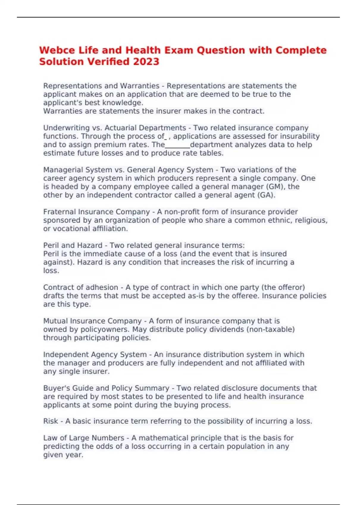 Webce Life and Health Exam Question with Complete Solution Verified 2023