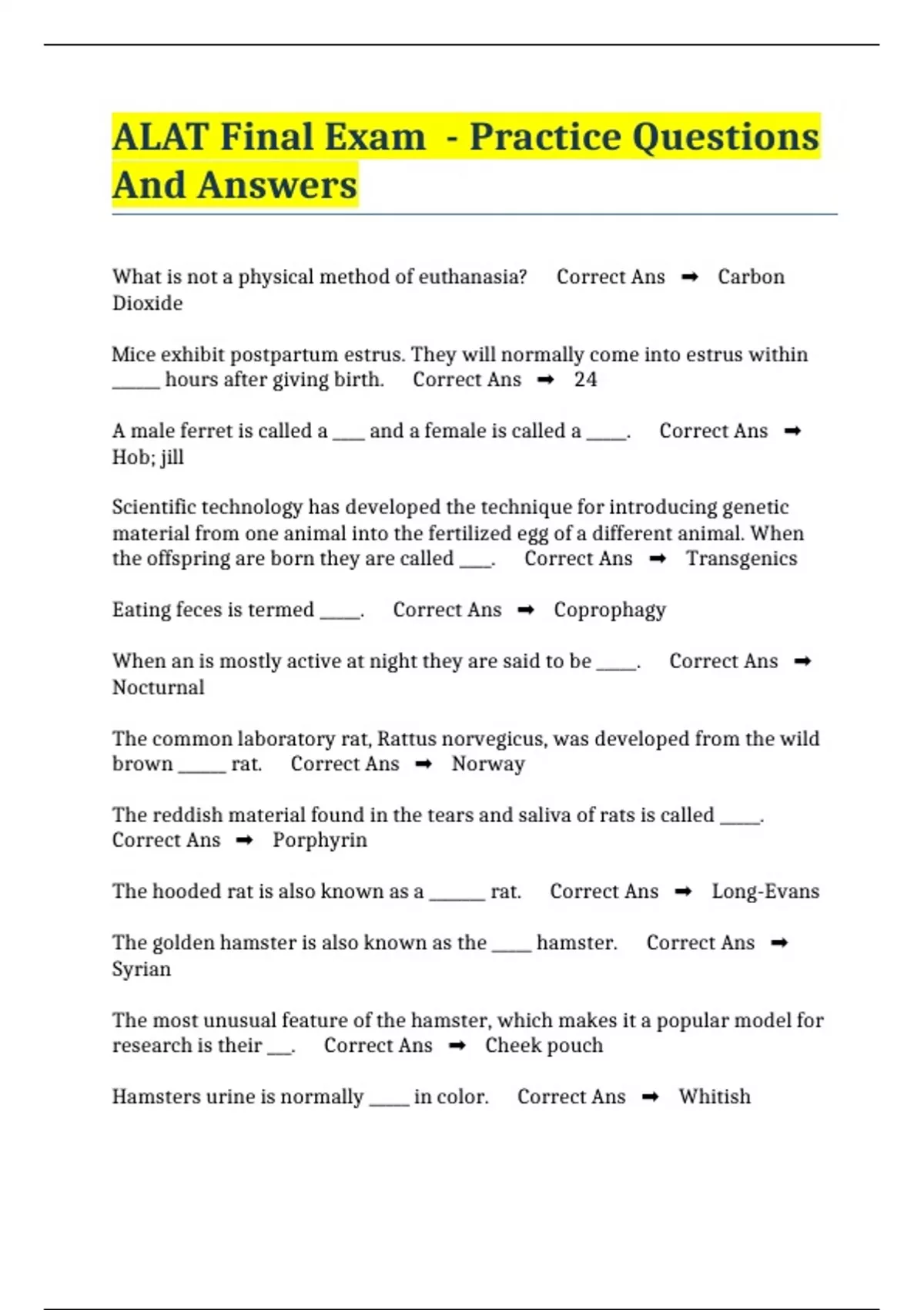ALAT Final Exam - Practice Questions And Answers